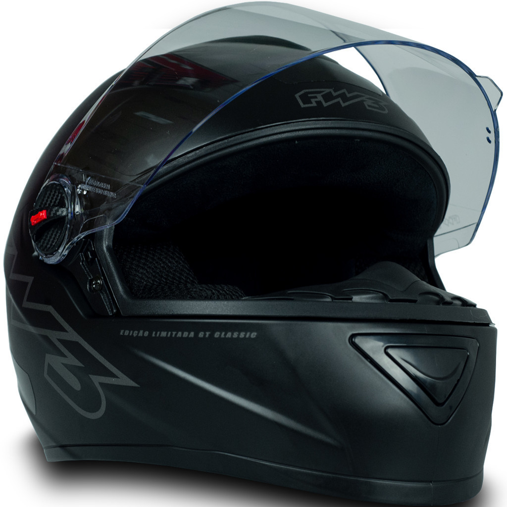 Capacete Moto Fechado GT Classic Viseira Cristal Preto Fosco Único Decal Inmetro Tamanho 60 - FW3