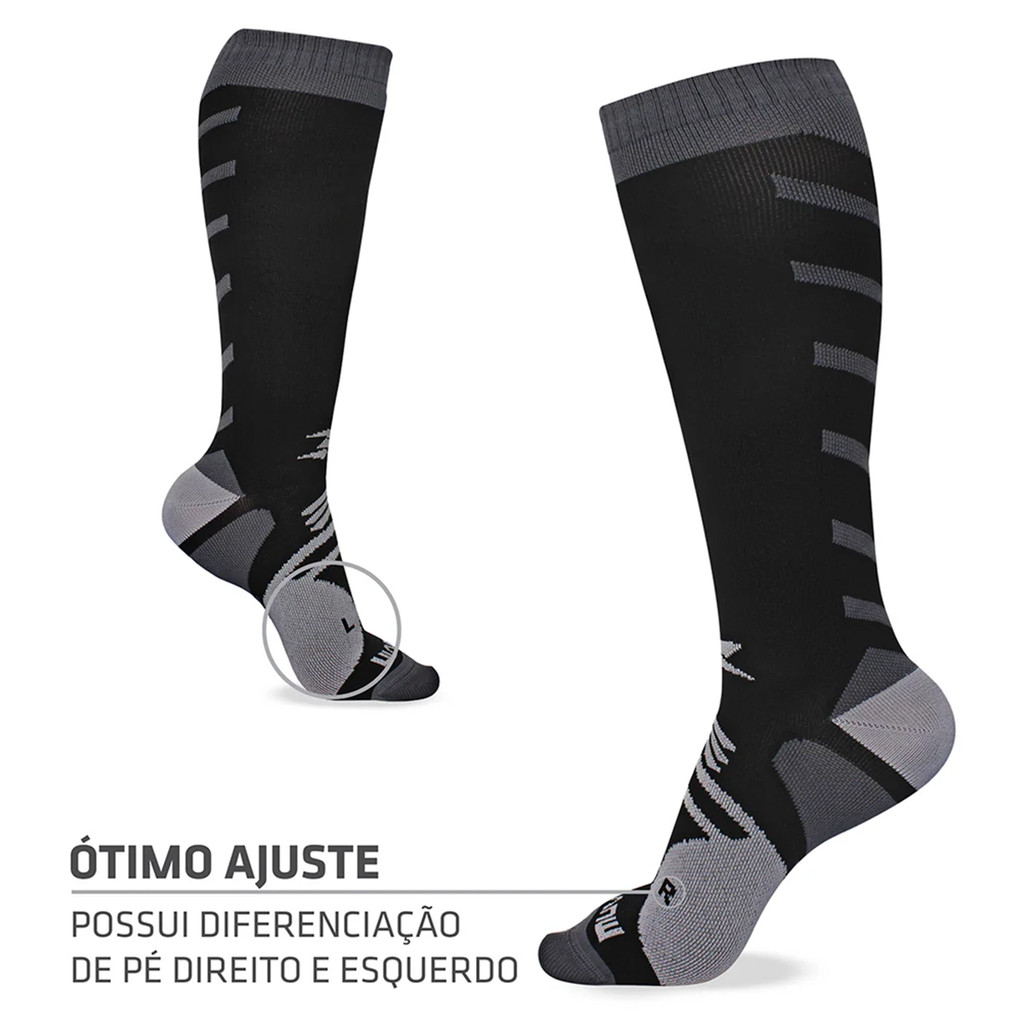 Meia de Compressão Esportiva Muvin Arrow Cano Longo Preto Unissex Tamanho 34–39 para Corrida Caminhada Ciclismo e Treino