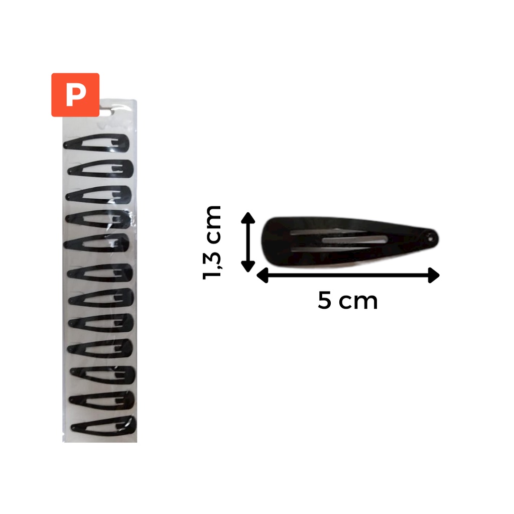 Presilha Grampo de Cabelo Tic Tac Preto - Pequeno e Grande 12 unidades
