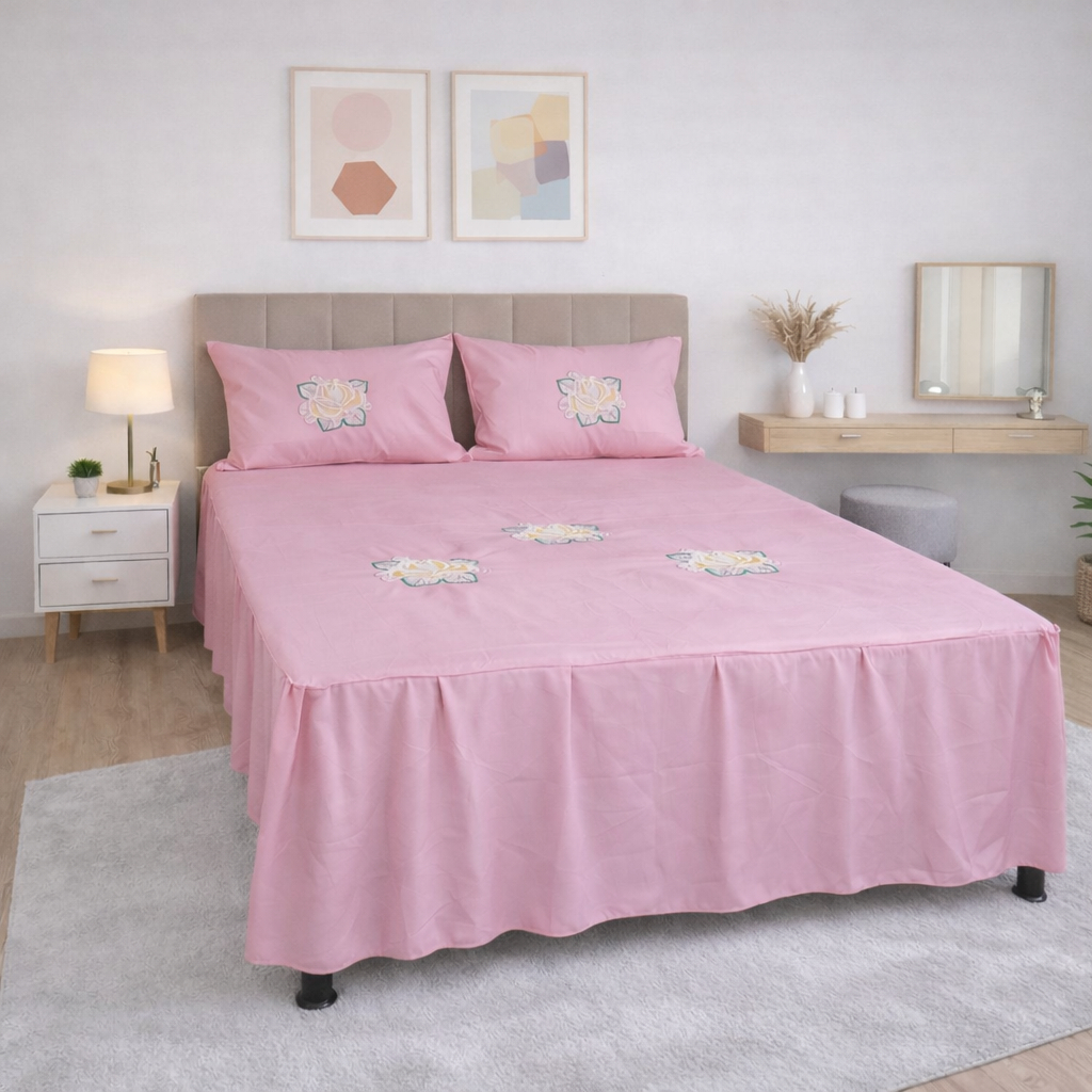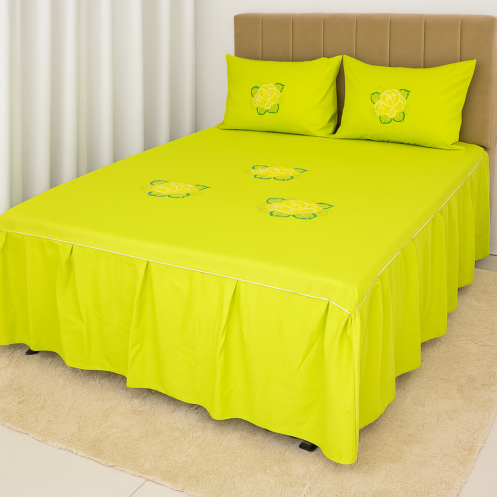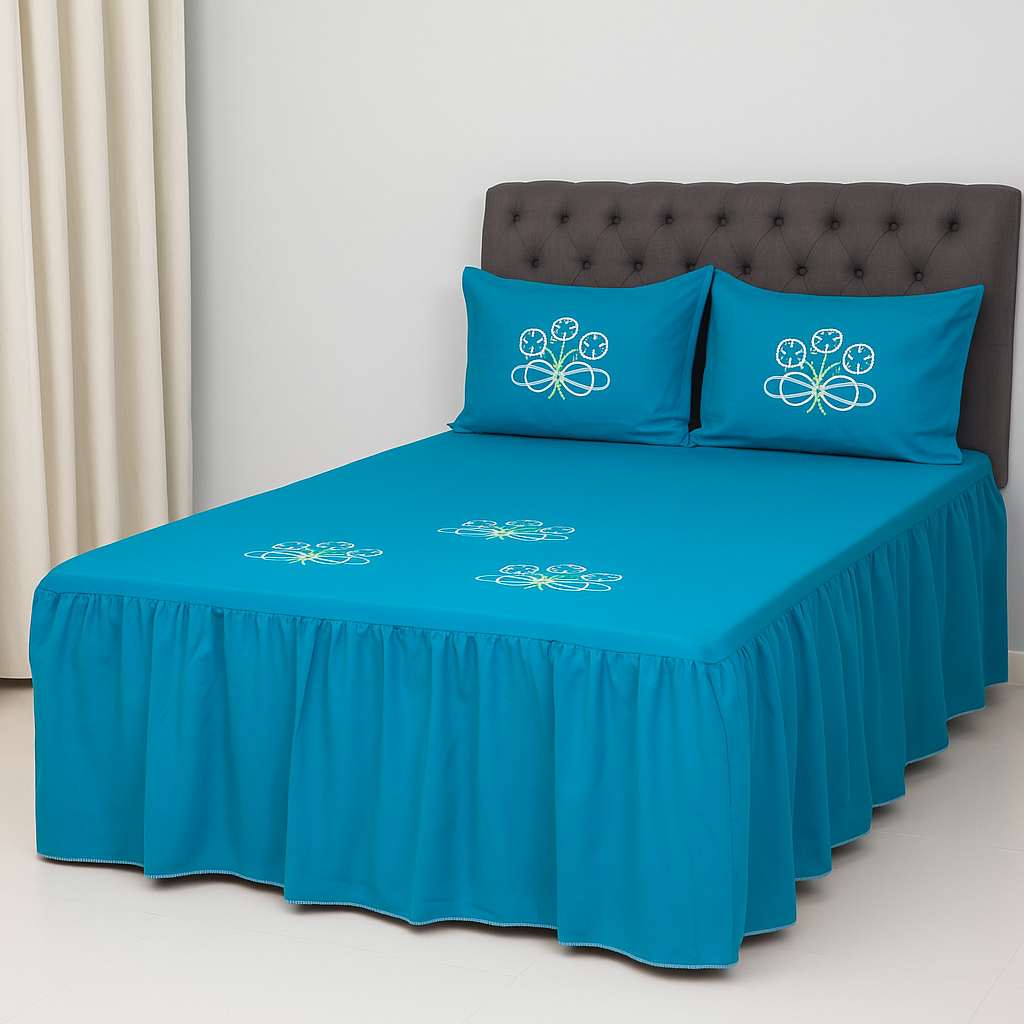 Jogo Colcha Casal Oxford 3 peças ( Colcha + Fronhas) Bordada Várias Cores Com Babado