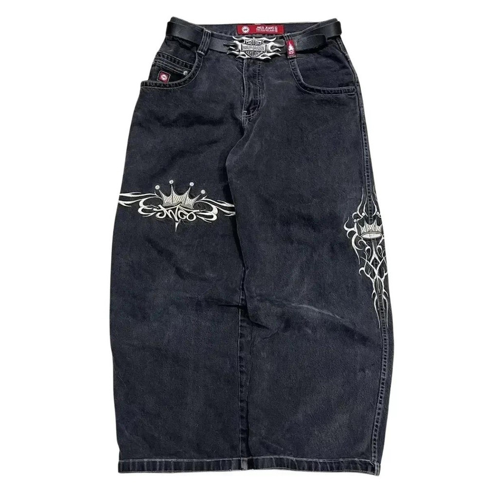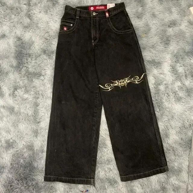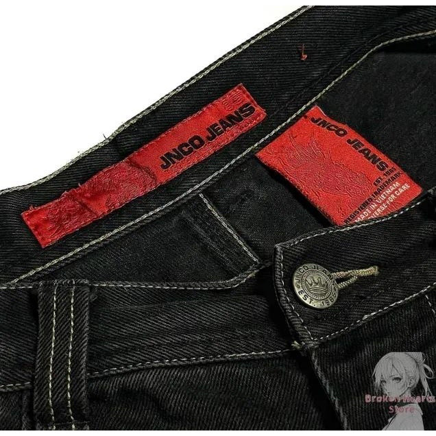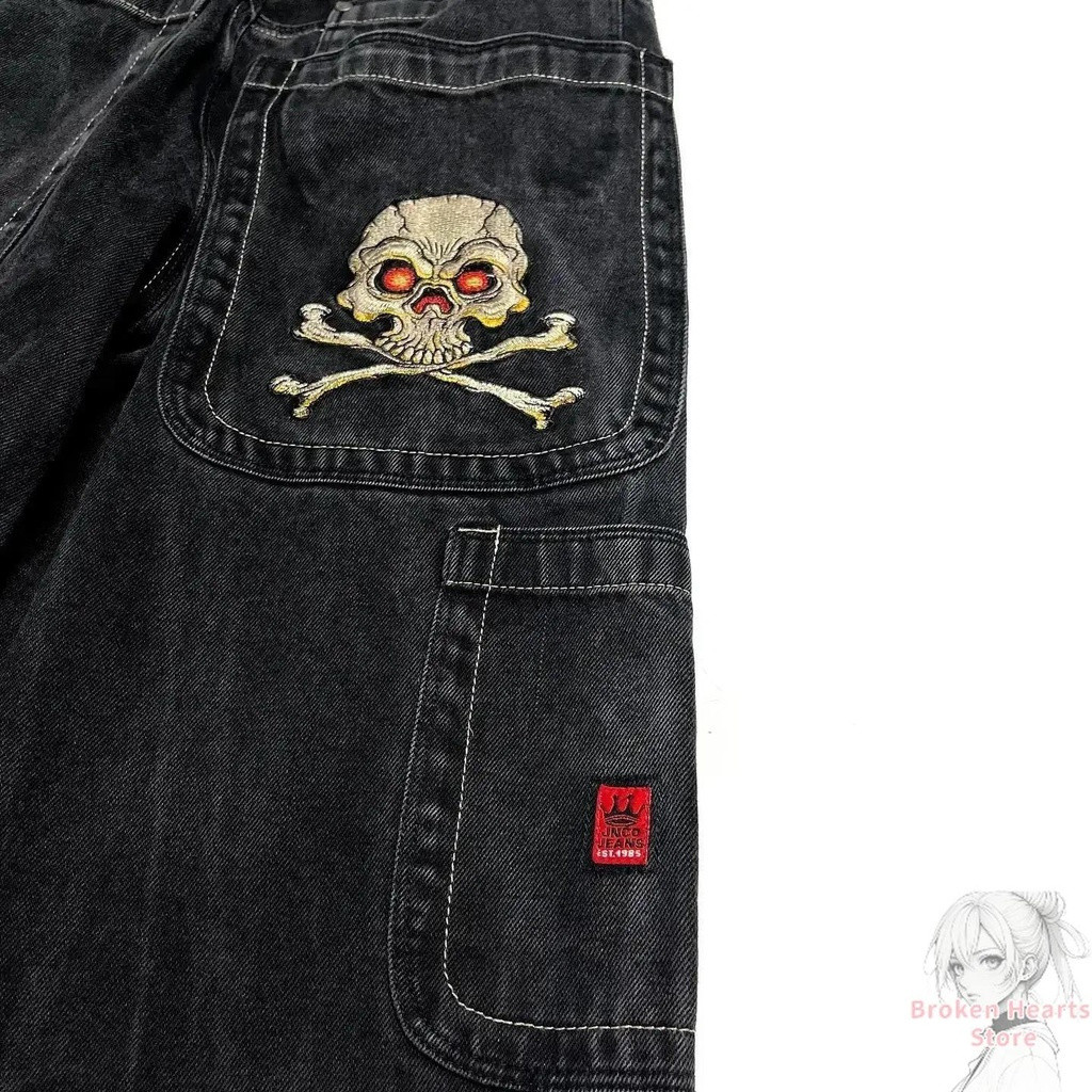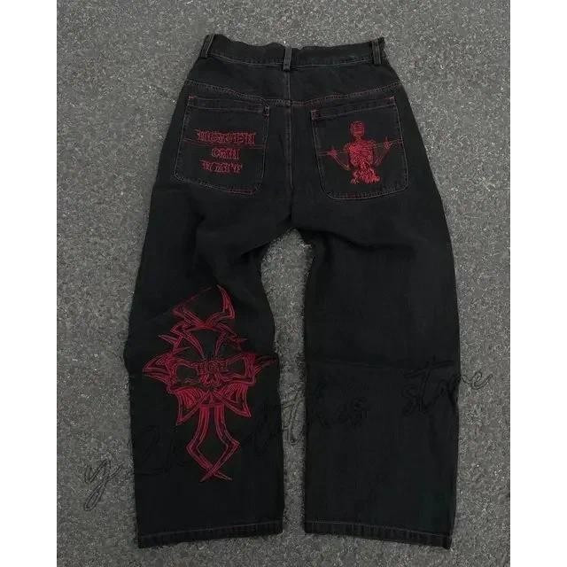 Harajuku Hip Hop Retro Crânio Gráfico Bordado JNCO Jeans Novo Baggy Denim Feminino Goth Cintura Alta Calças Largas