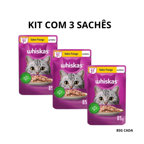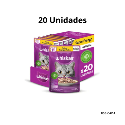 Whiskas Sachê Frango ao Molho – Ração Úmida para Gatos Adultos 85g
