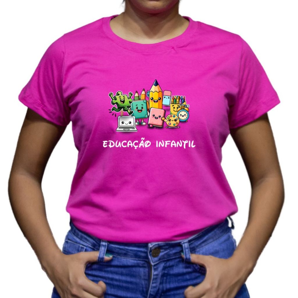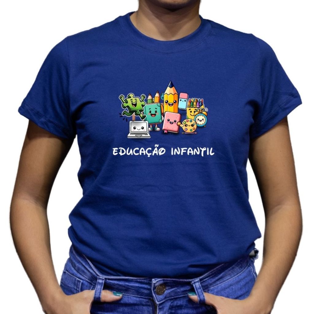 Camiseta preta feminina tema educação infantil criança escola professora ensino babylook plus size