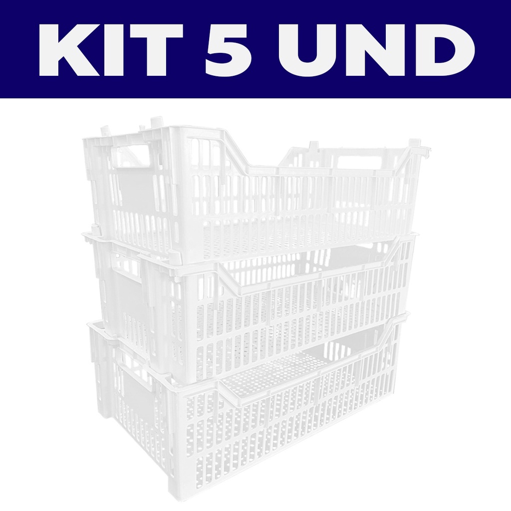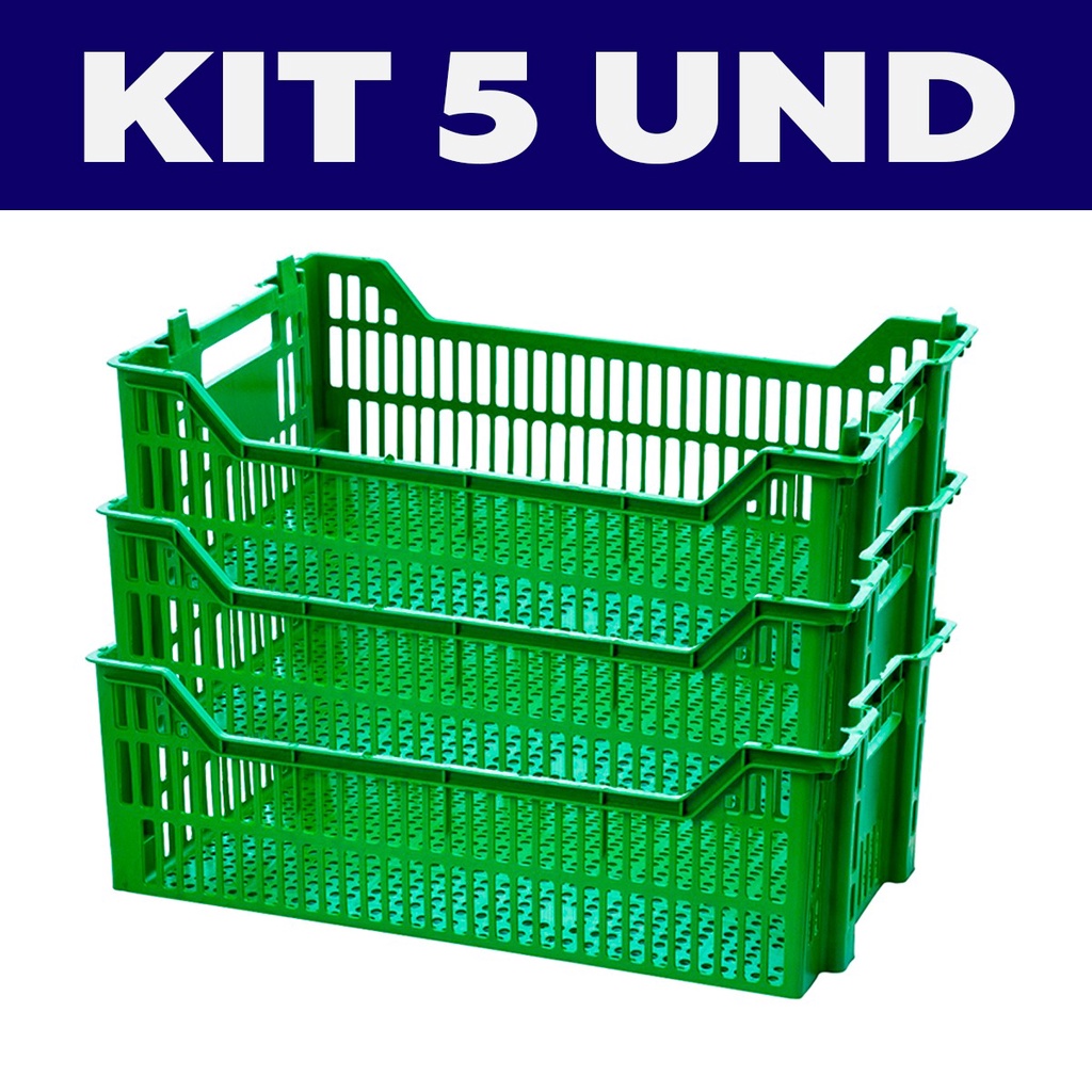 Kit 5 Caixa Plástica Organizadora Hortifruti Feira Oferta Fruteira Mercado Bar Horta Frutas Legumes