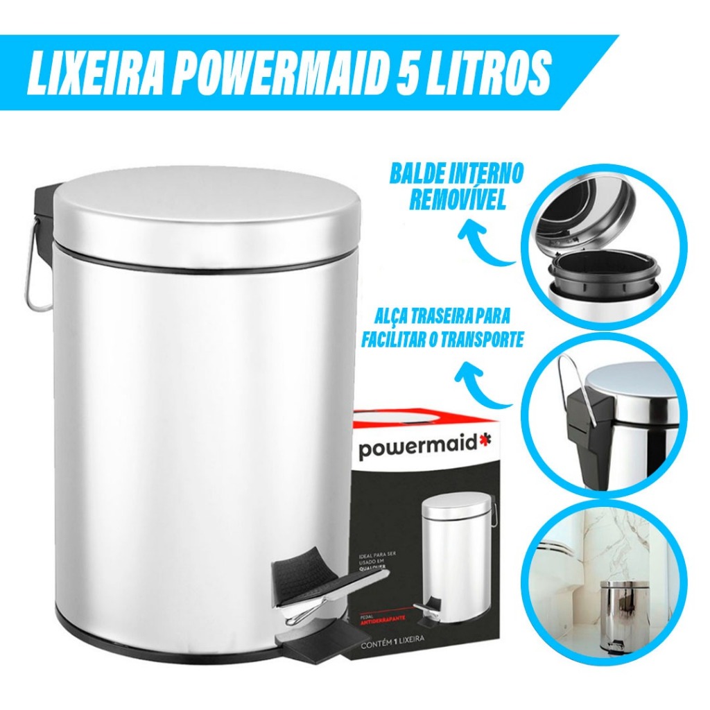 Lixo Lixeira Redonda 3 5 12 Litros Aço Inox Balde Cesto Removível Alça Com Pedal Para Banheiro Escritório Lavabo Cozinha