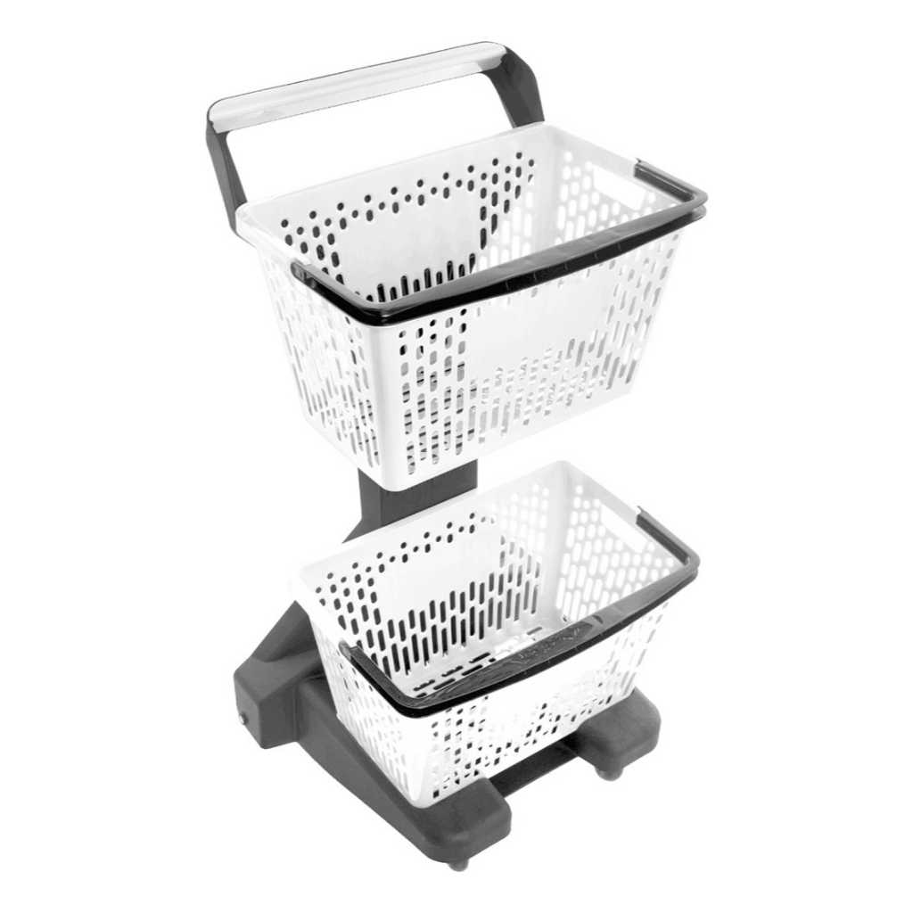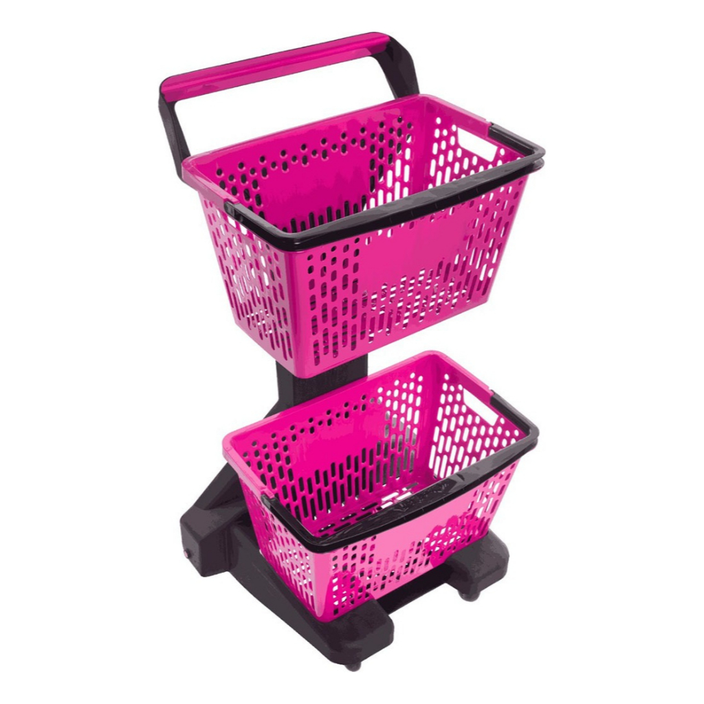 Carrinho Supermercado Plástico New Duplo Cesto Ecoflex Reforçado Exclusivo 50 Litros