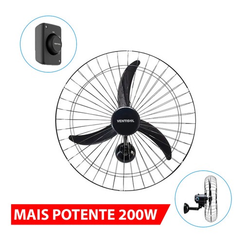 Ventilador Osc Parede 60cm Preto Bivolt Potente 200w Premium Ventisol Cor Da Estrutura Preta 127v/220v