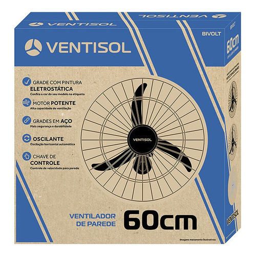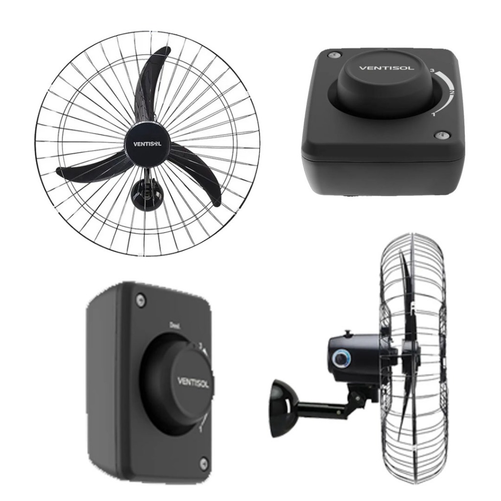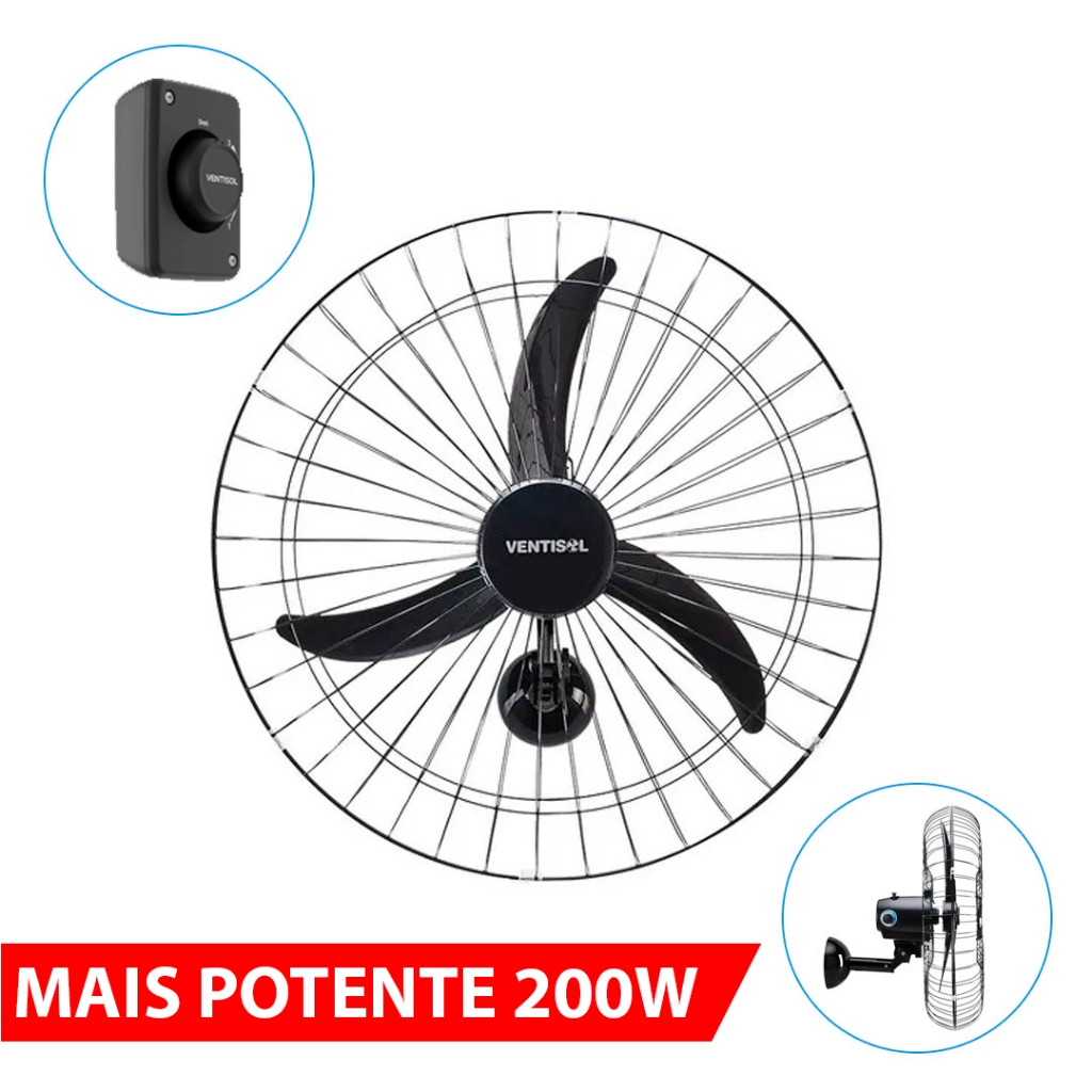 Ventilador De Parede Ventisol Comercial Preto 147W Com 3 Pás De Plástico 60cm De Diâmetro 127/220V