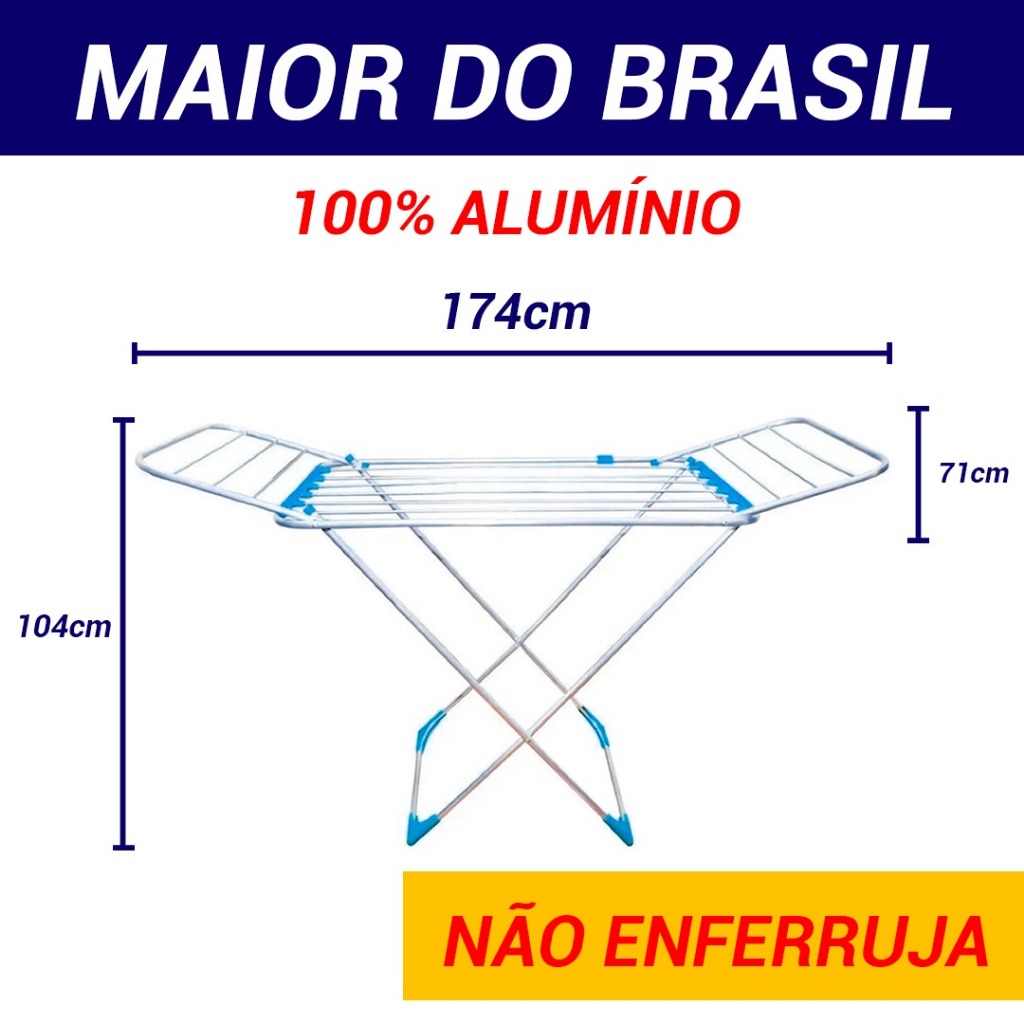 Varal P/ Roupas De Chão Gigante 100% Alumínio Reforçado Com Abas Dobrável Retrátil Resistente