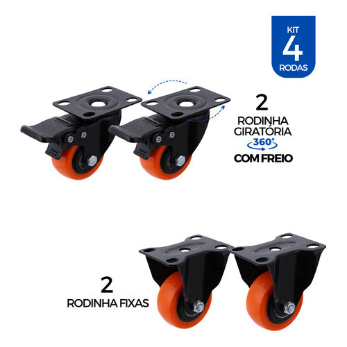 4 Rodinha Rodízio Roda Reforçada Com E Sem Trava 50mm 400kg