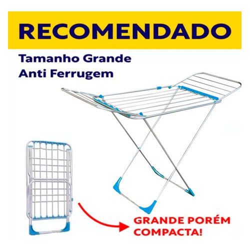 Varal Gigante 174cm Chão 100% Alumínio Dobrável c/ Abas Super Resistente e Antiferrugem