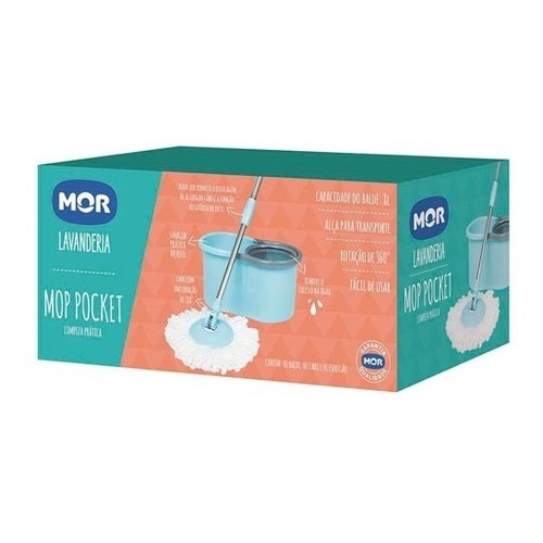 Kit Mop Completo Com Balde Giratório Esfregão 8 Litros Limpador De Microfibra Limpeza Casa - Mor