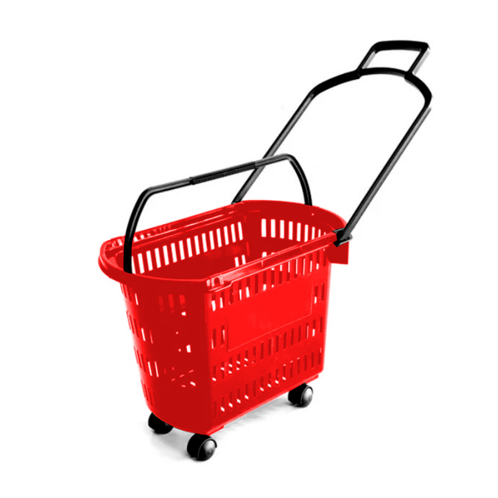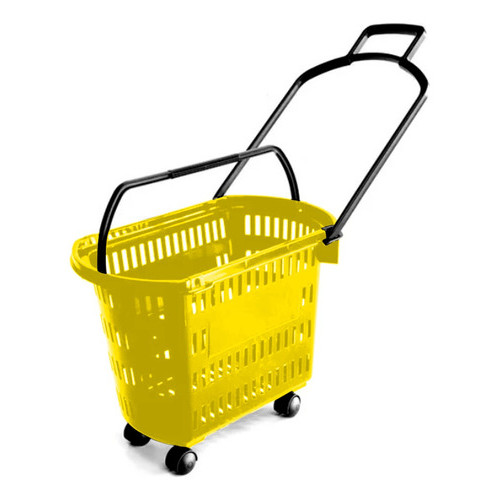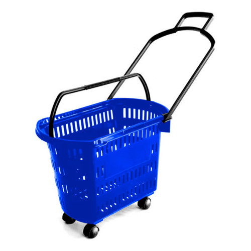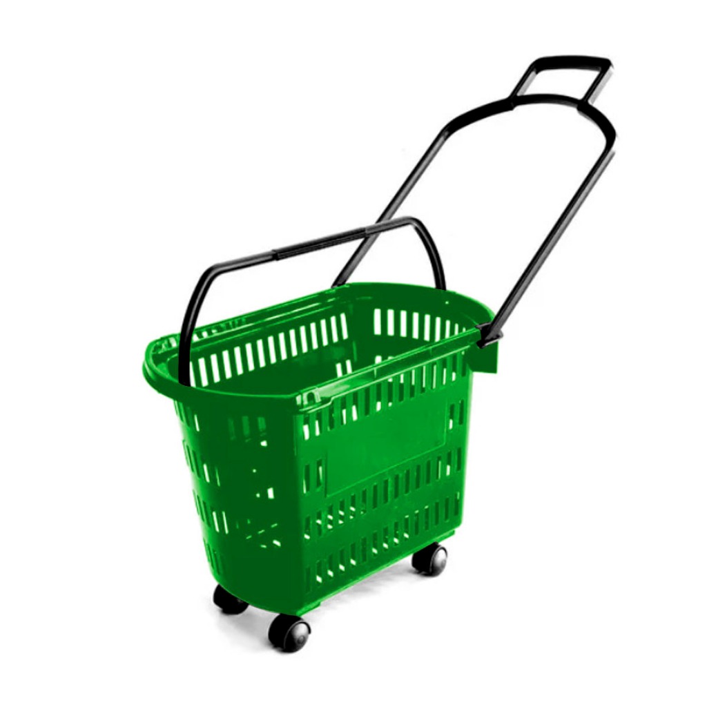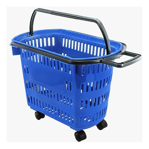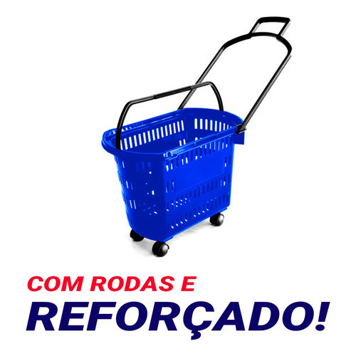 5 Carrinho Cesta Compras C/ Rodinhas + Alças Mercado Lojas Varejo Cestinha Cestas Vazada Plástico