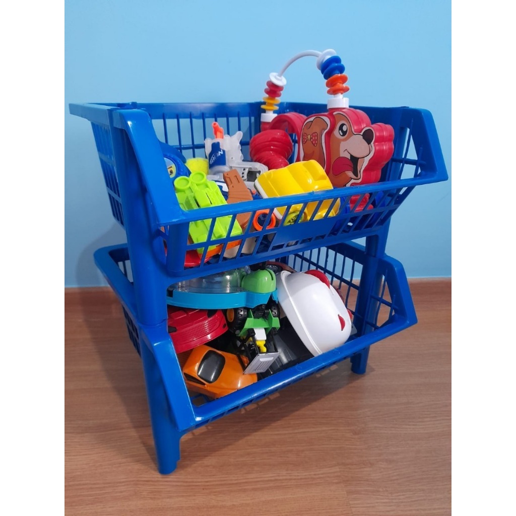 2 Und. Cesto Expositor Reforçado Gondola Organizador Empilhável Multi Uso Cores 44 X 34 X 26 cm