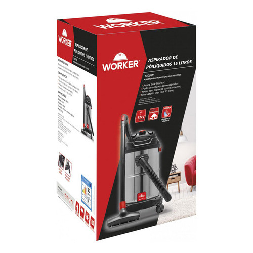 Aspirador Veicular Profissional Inox de Pó e Água Portátil 15L 1400W Muito Potente - Worker Original