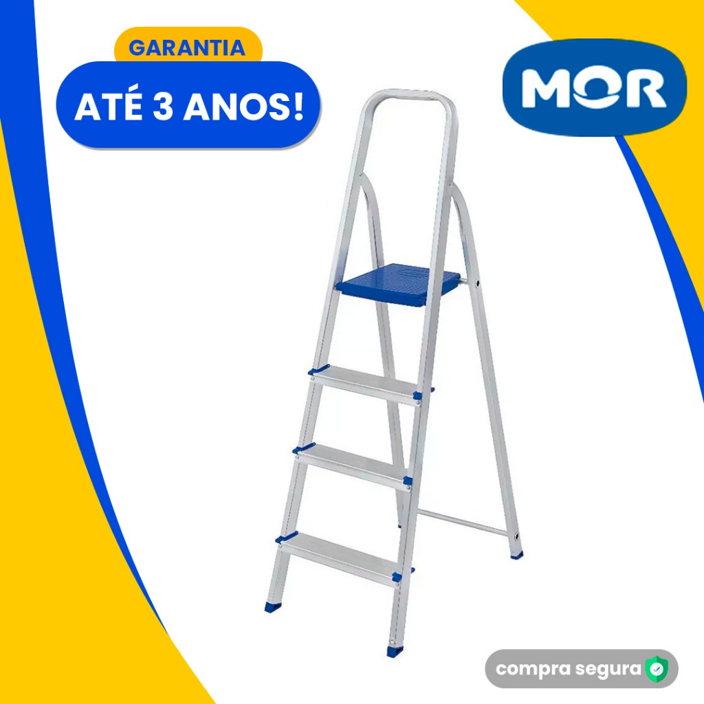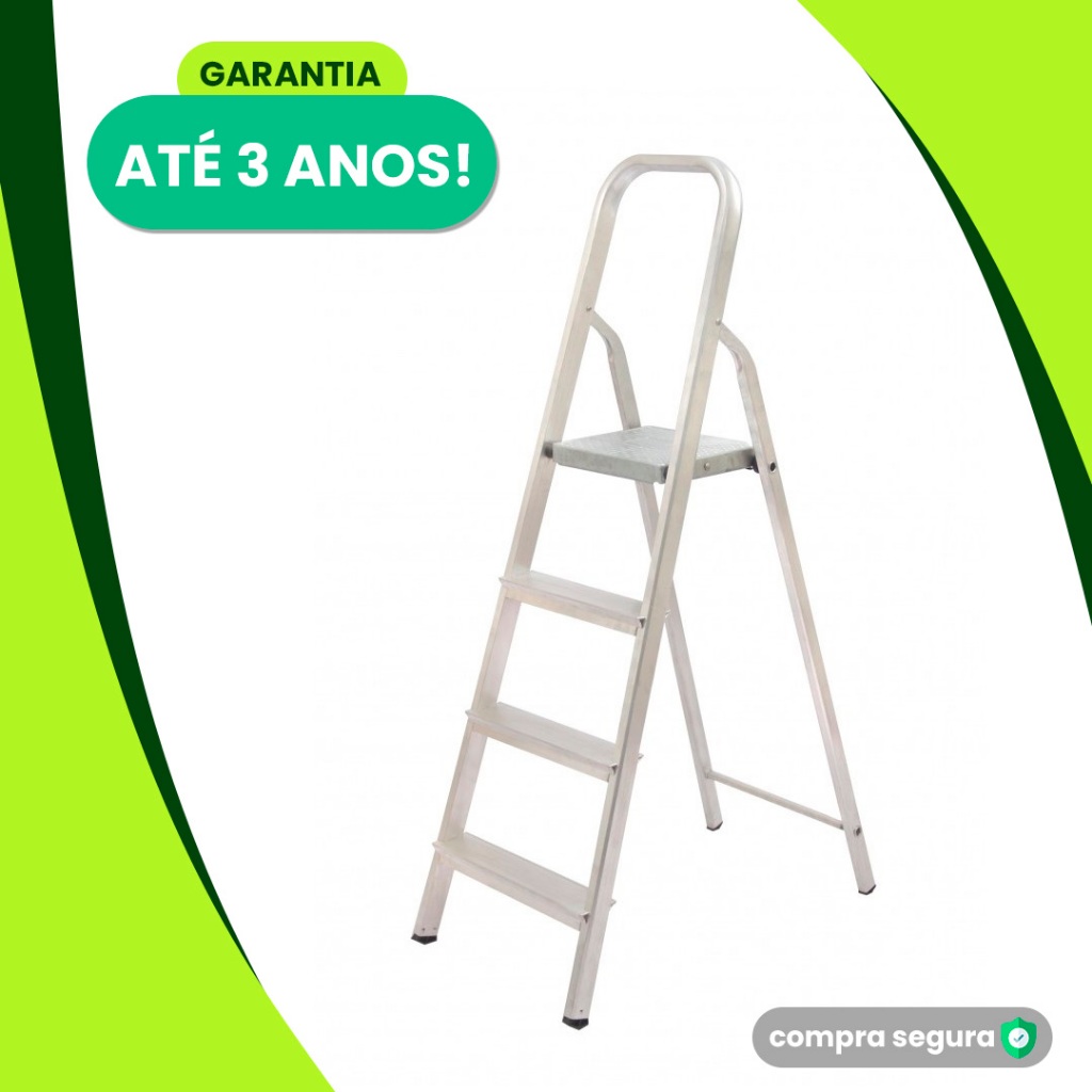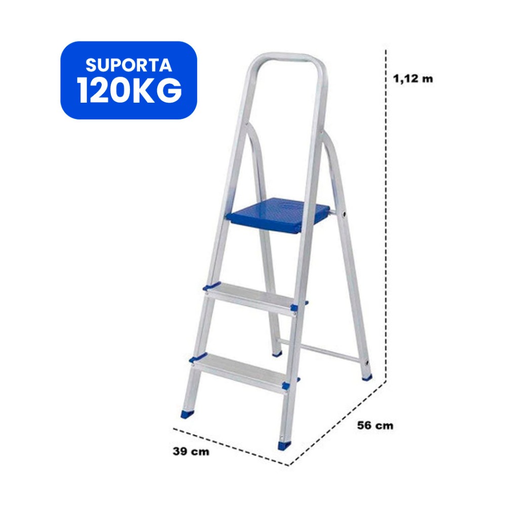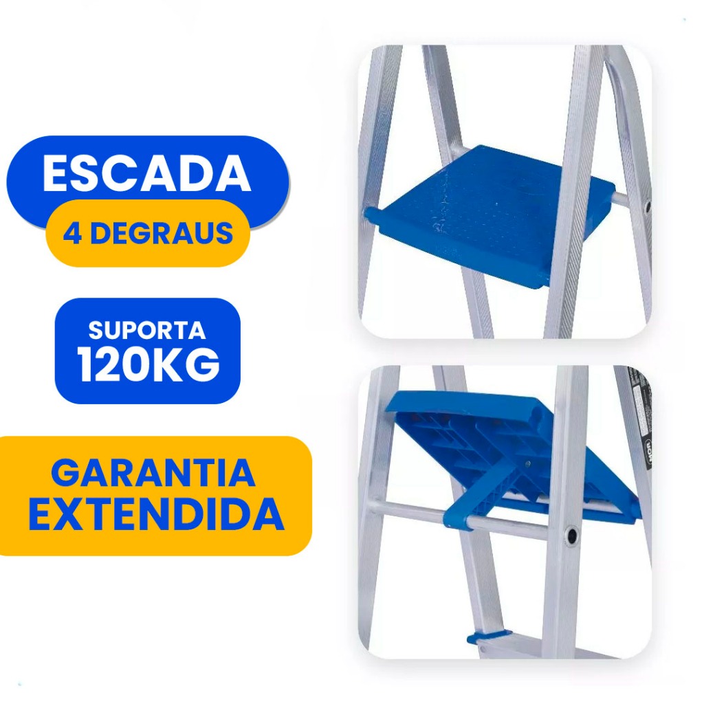 Escada 100% Alumínio 3 Ou 4 Degraus Max 120Kg Dobrável Resistente Doméstica Flexível Reforçada Aço