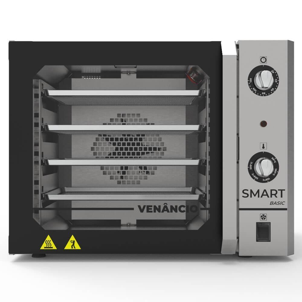 Forno Convector Venâncio Smart Basic Modelo 4 Esteiras com Corpo Preto e Painel Inox 220V FCSB4EPRIN