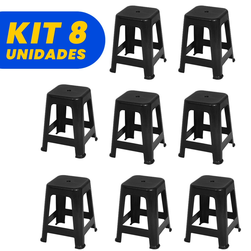 Kit 8 Banquetas Banco De Plástico Mor Até 120 Kg Polipropileno Resistente P/ Bar Casa Cozinha Jardim