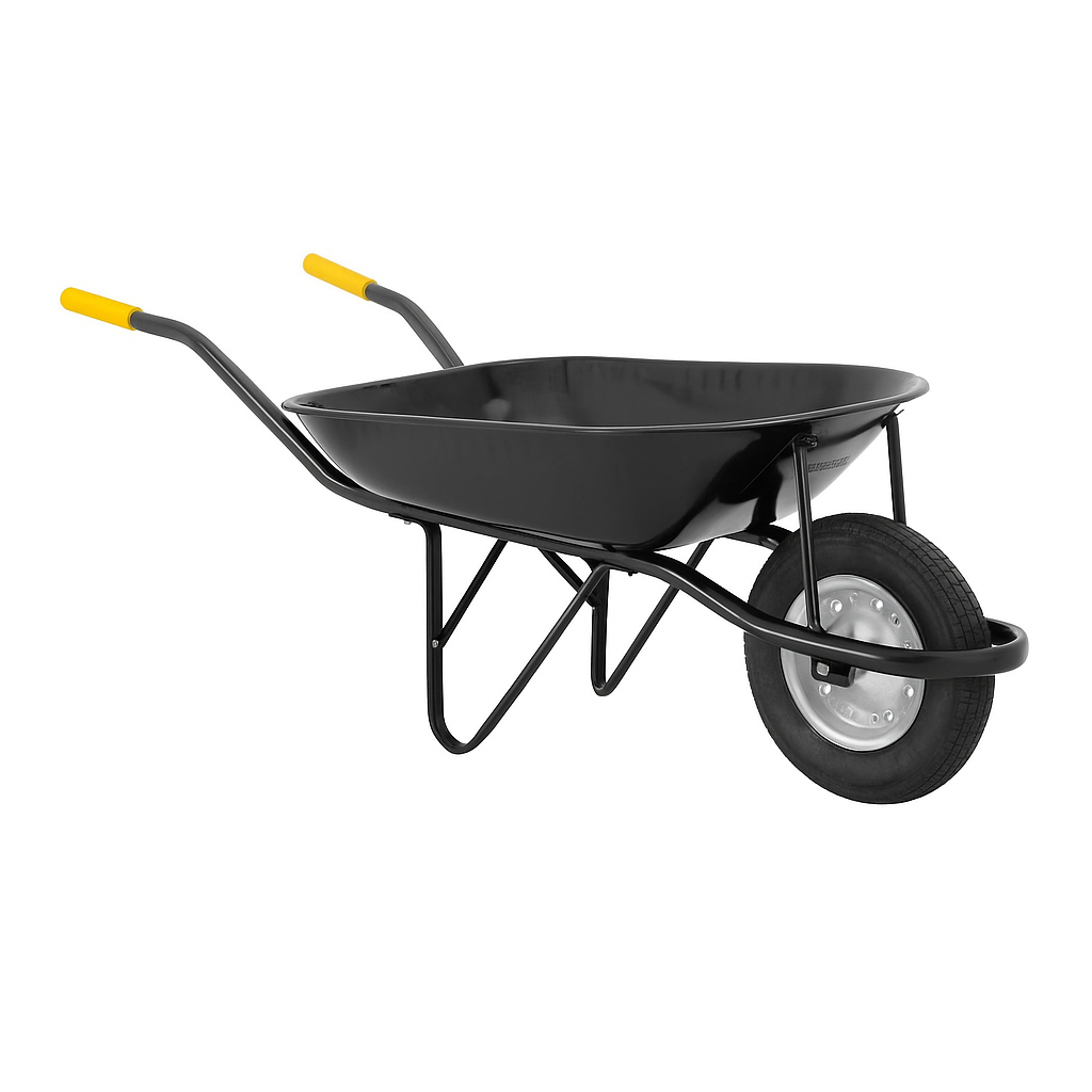 Carrinho de Mão com Pneu e Câmara Caçamba Redonda NOVE54 100kg Resistente Construção Preto