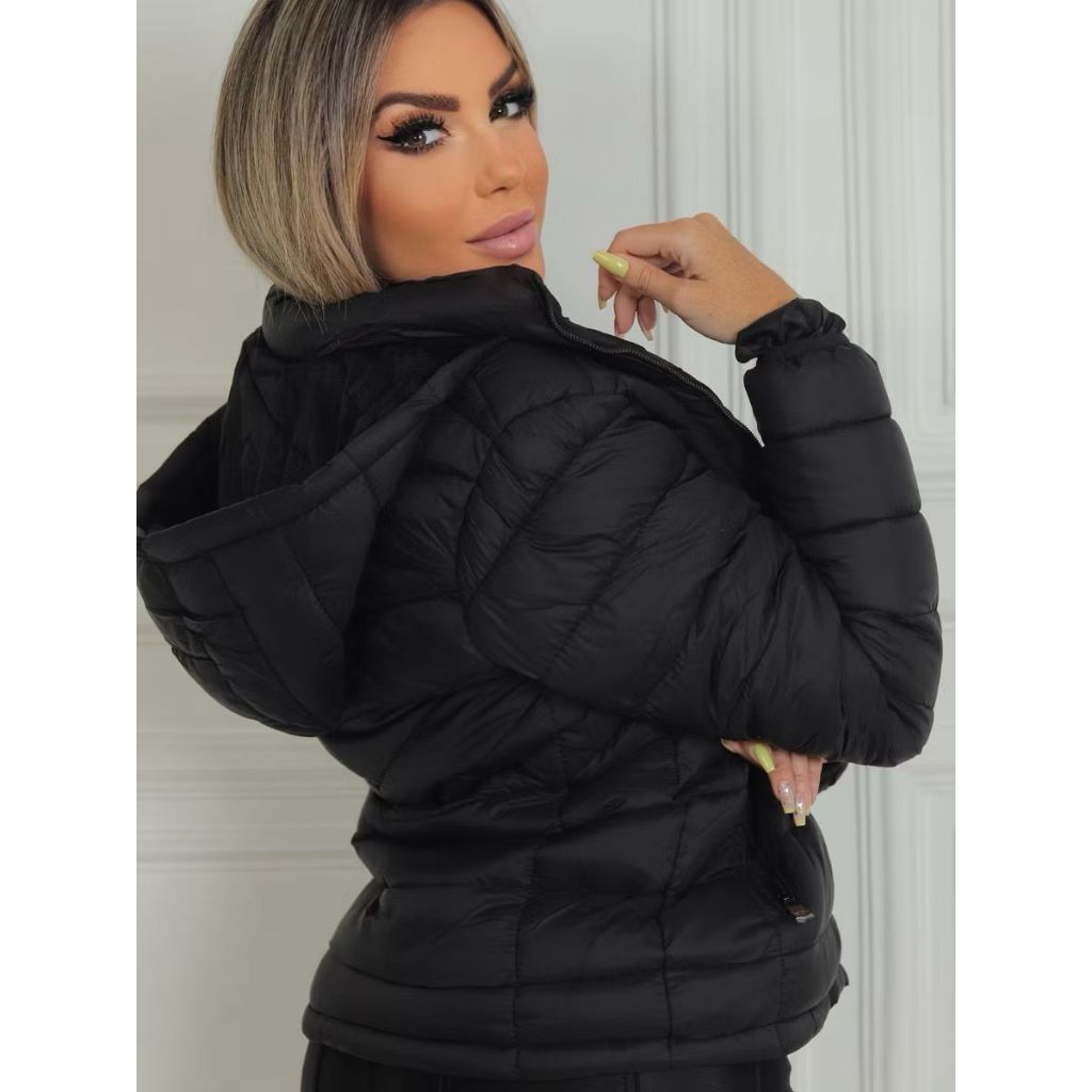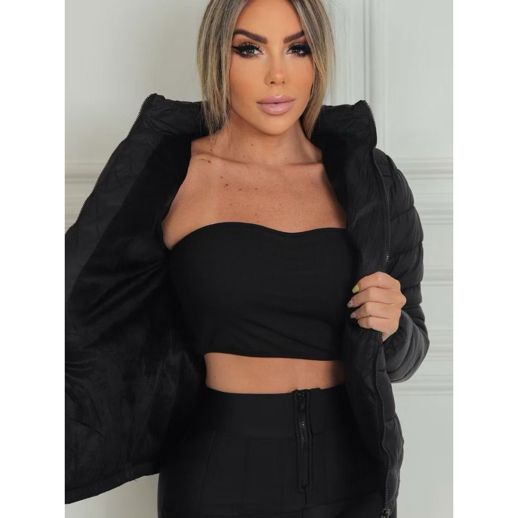 Jaqueta Puffer Forrada Apeluciada com Capuz Feminina
