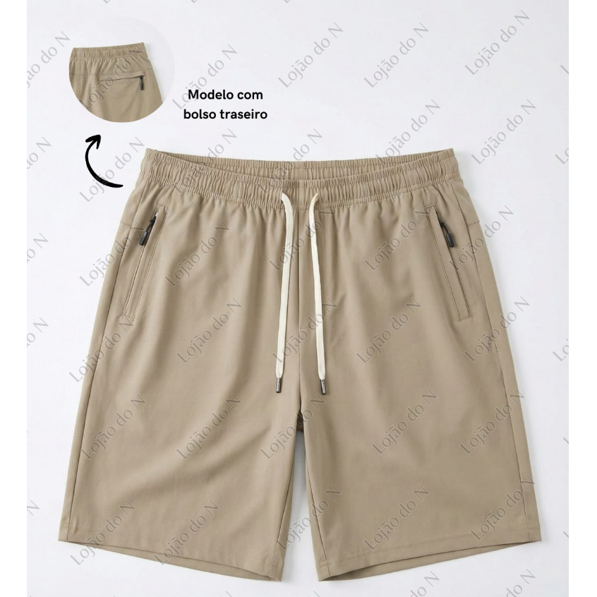 Bermuda Short Masculino Praia 2 Bolsos Zíper Secagem Rápida