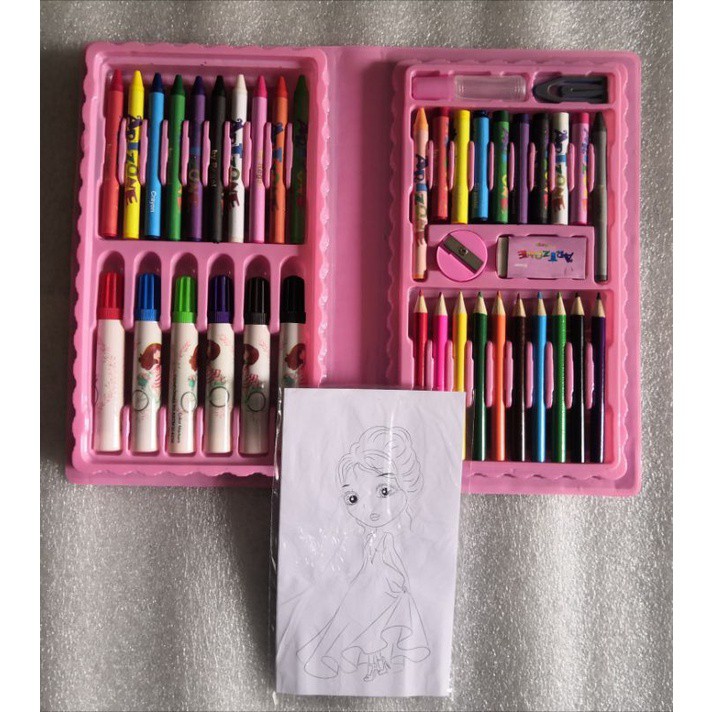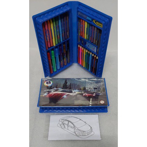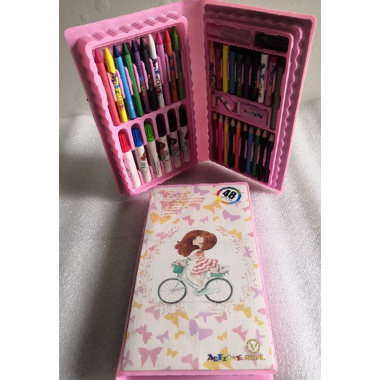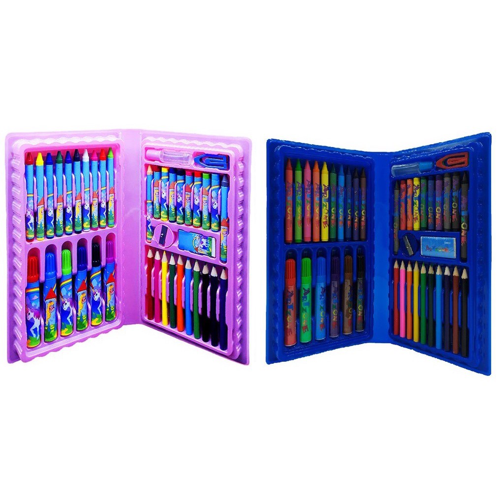 Kit Estojo Material Escolar Infantil Para Pintura Maleta Com 48 Peças