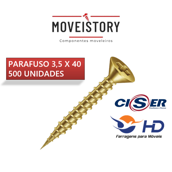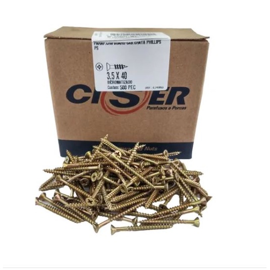 Parafuso 3,5 X 40 Chipboard Chata Phillips para Madeira - HD CAIXA COM 500 peças - 3,5x40