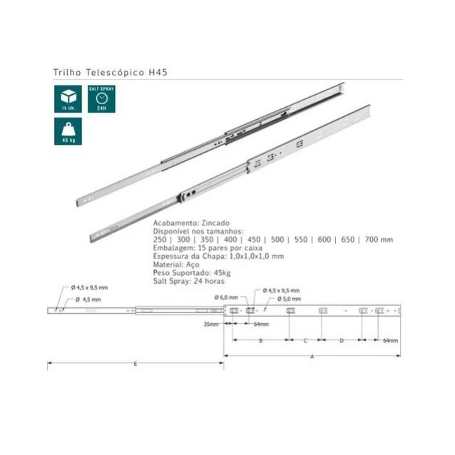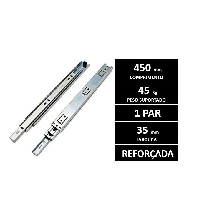 Corrediça Telescópica Reforçada para gaveta de 45cm