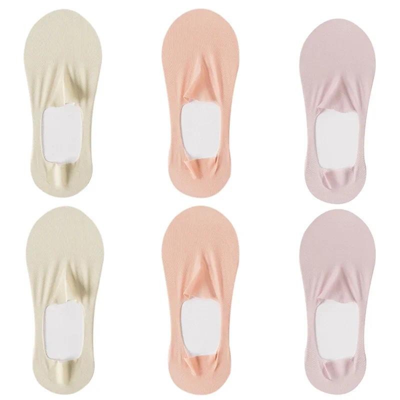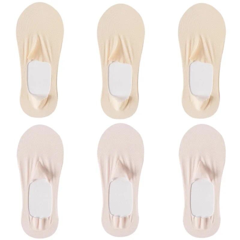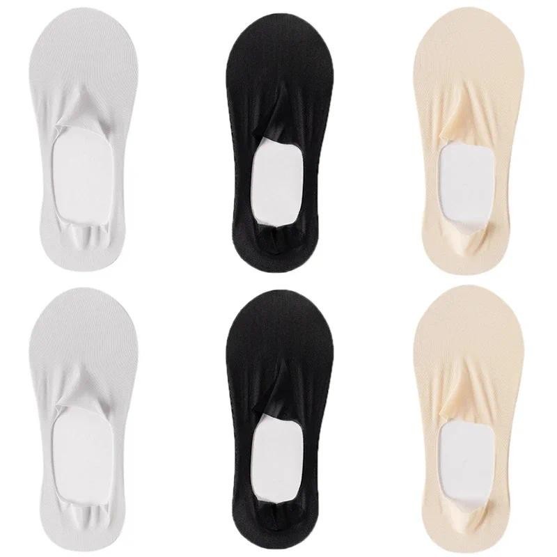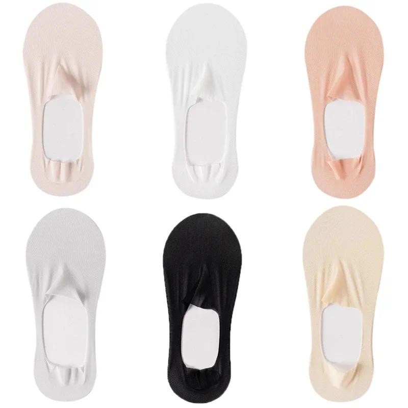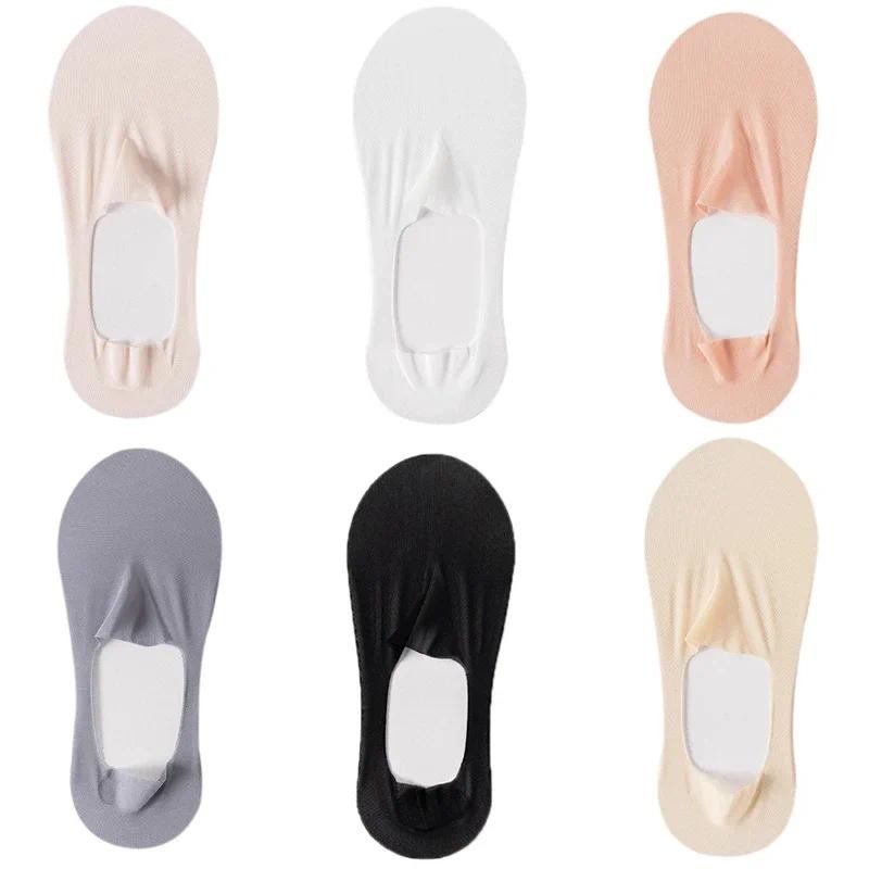 6Pairs Meias De Barco Invisíveis Ultra-Finas Femininas De Seda De Gelo A Lazer Sox De Silicone Sem Escorregamento