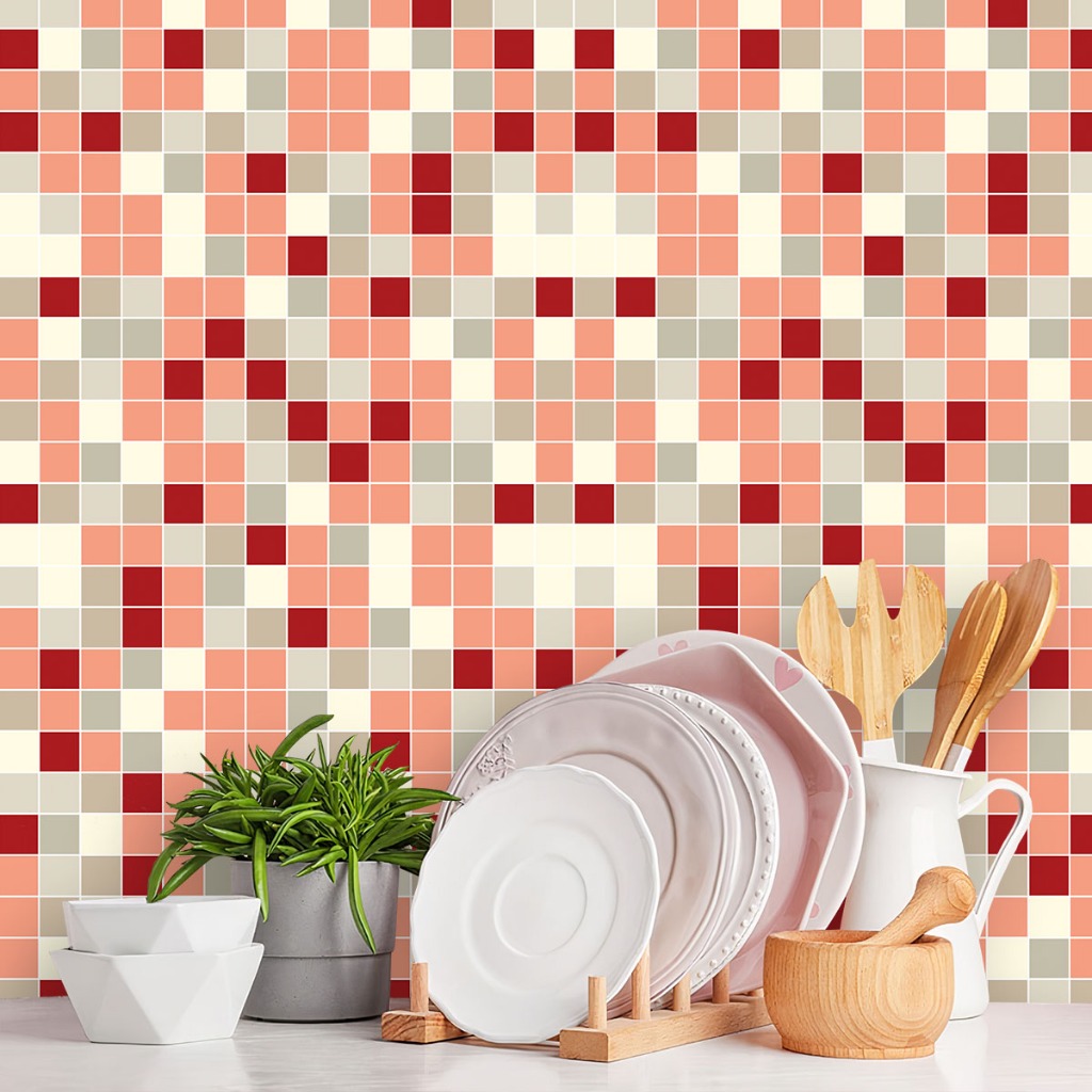 Papel de Parede Adesivo Pastilha Diversos Modelos Tons de Vermelho Rolo 1m