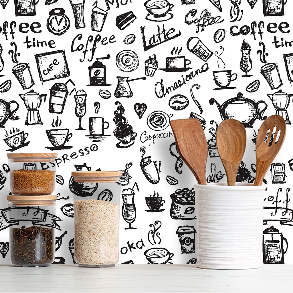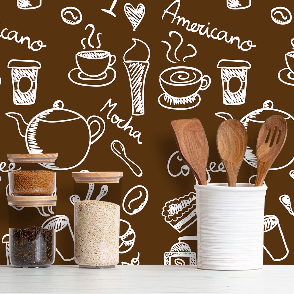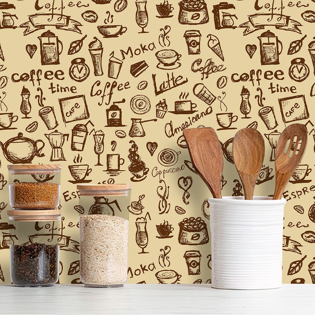 Papel de Parede Adesivo Lavável Cozinha Café Diversos Modelos Rolo 3m