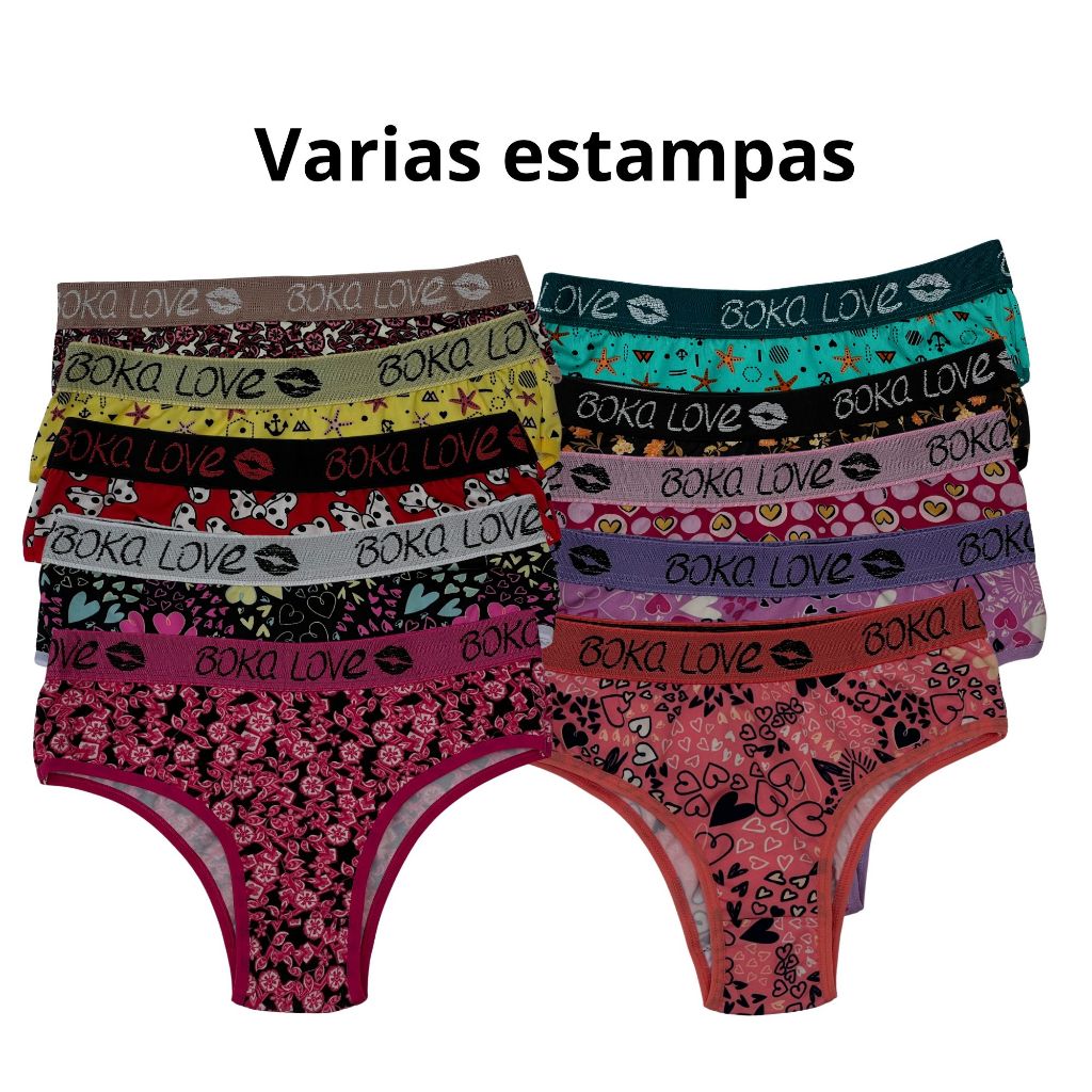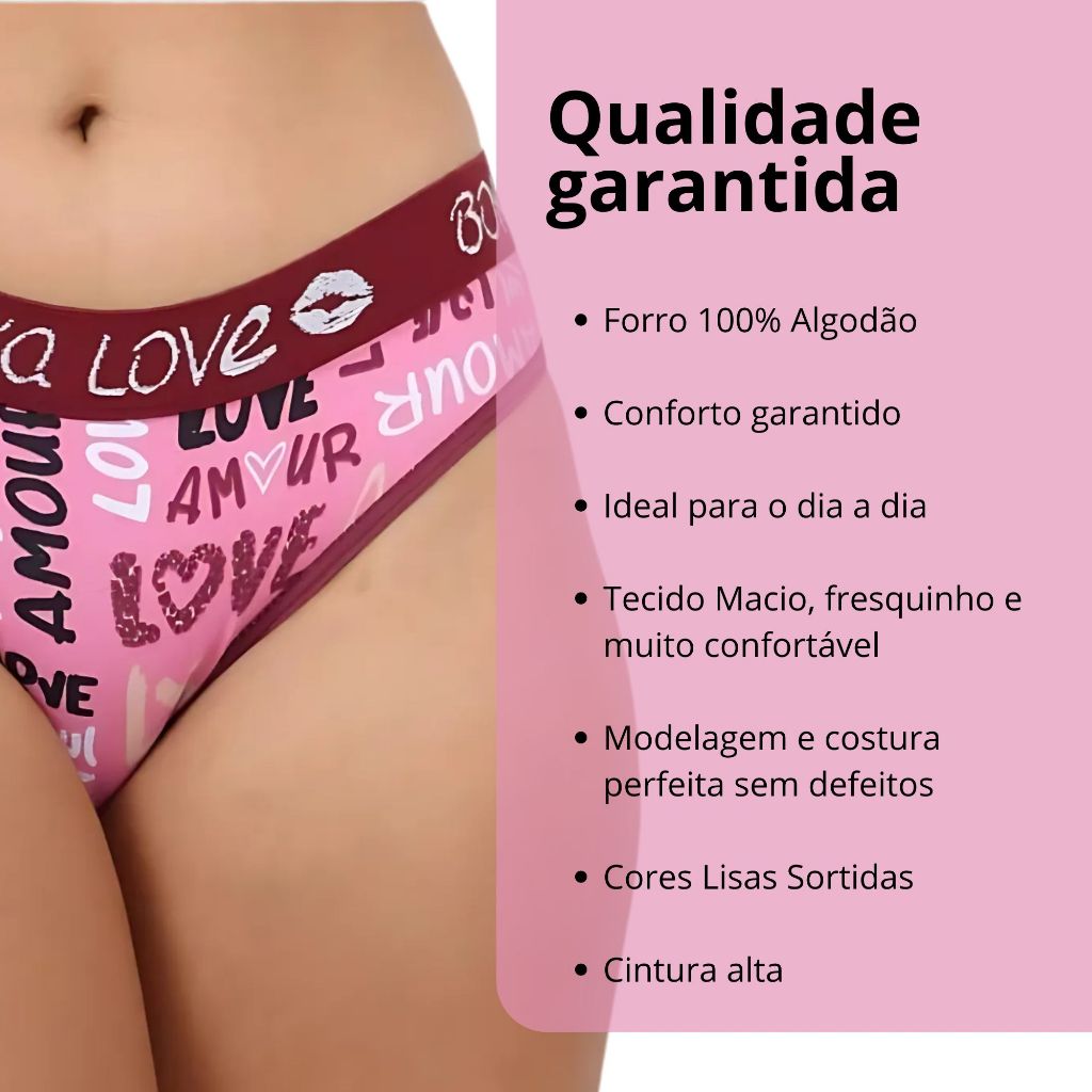 Kit Calcinha Cós Grosso Cintura Alta Estampada microfibra.