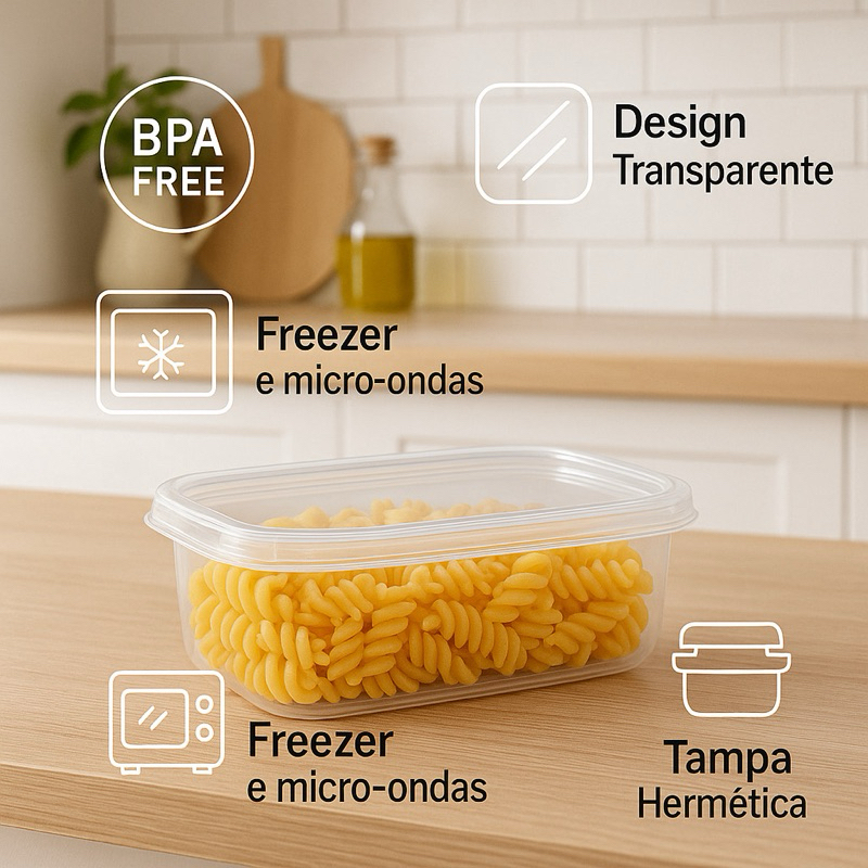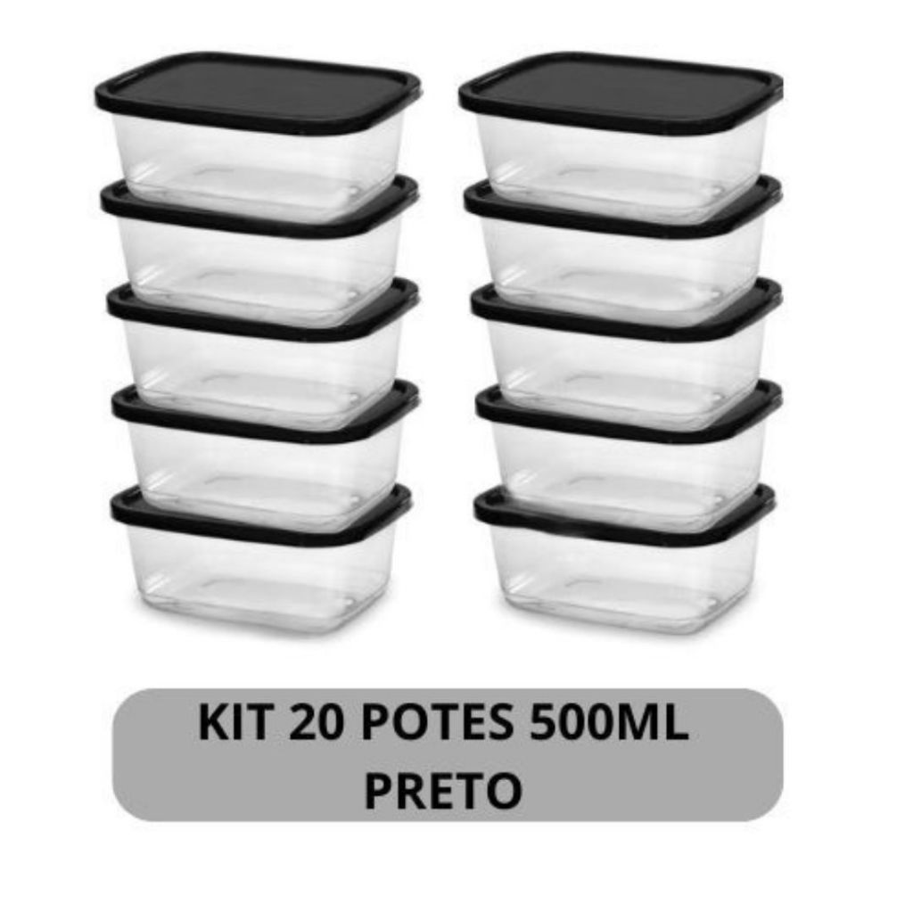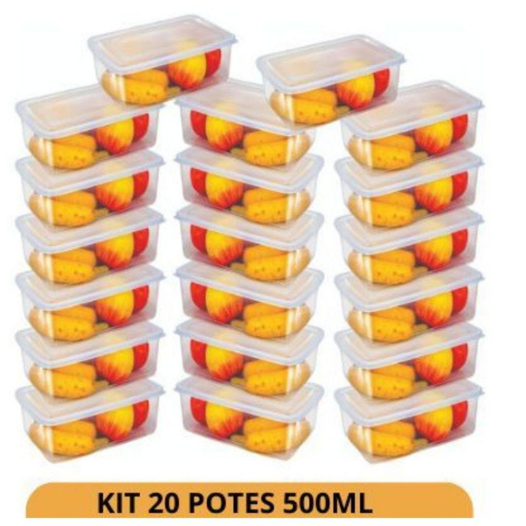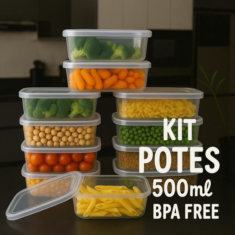 Kit Potes Marmita Fitness 500ml Reutilizável Transparentes BPA FREE Freezer Microondas Organizado