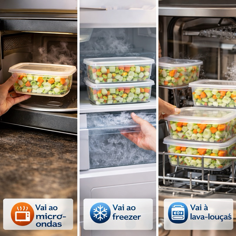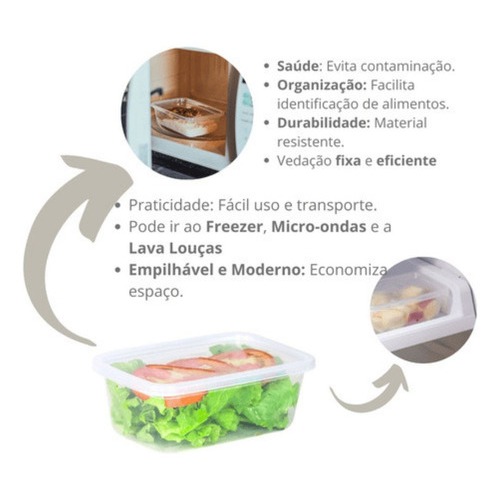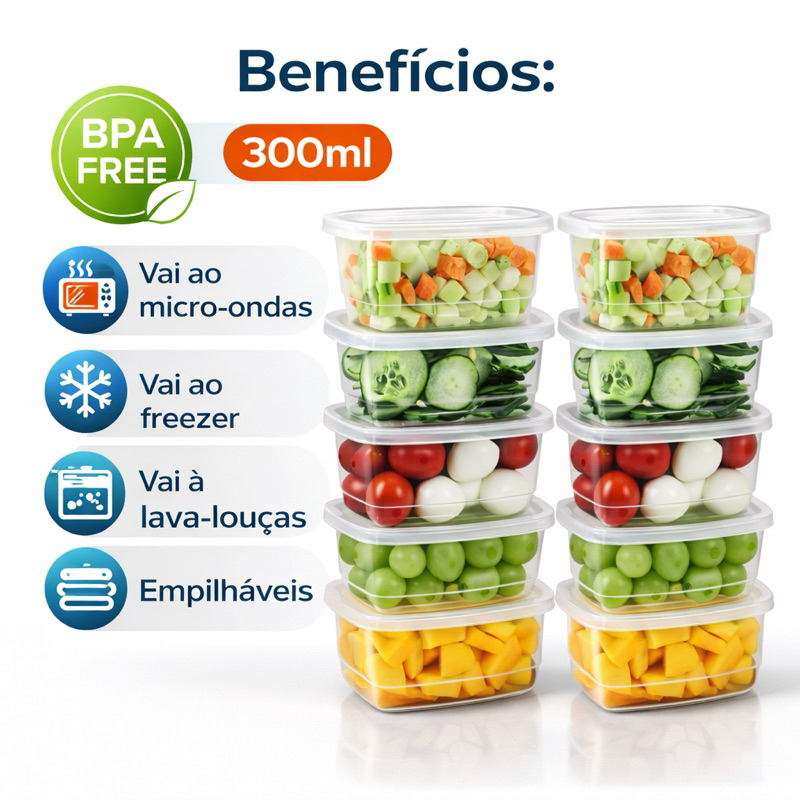 Kit Potes Marmitas Fitness 300ml Livre de BPA Transparentes Microondas Freezer Organizador Alimentos