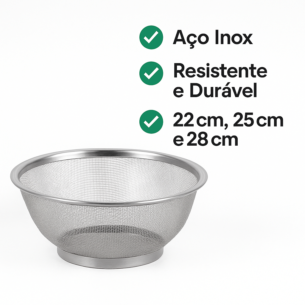 Cesta Escorredor Peneira Inox 22cm 25cm 28cm Unidade ou Kit Para Cozinha Legumes Frutas Massa Arroz