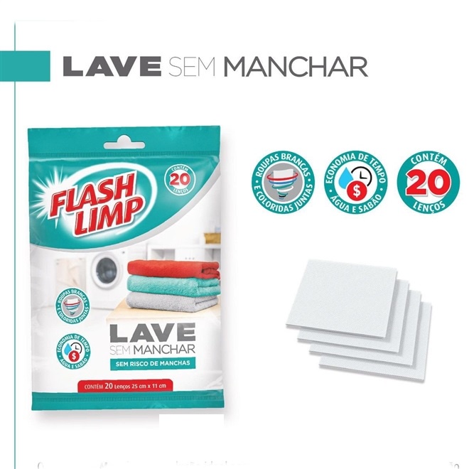 Lave Sem Manchar Anti mancha 20 Lenços Lave Roupas Flash limp