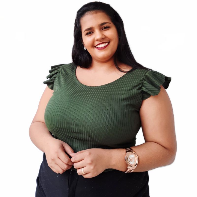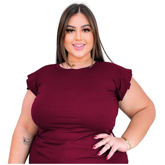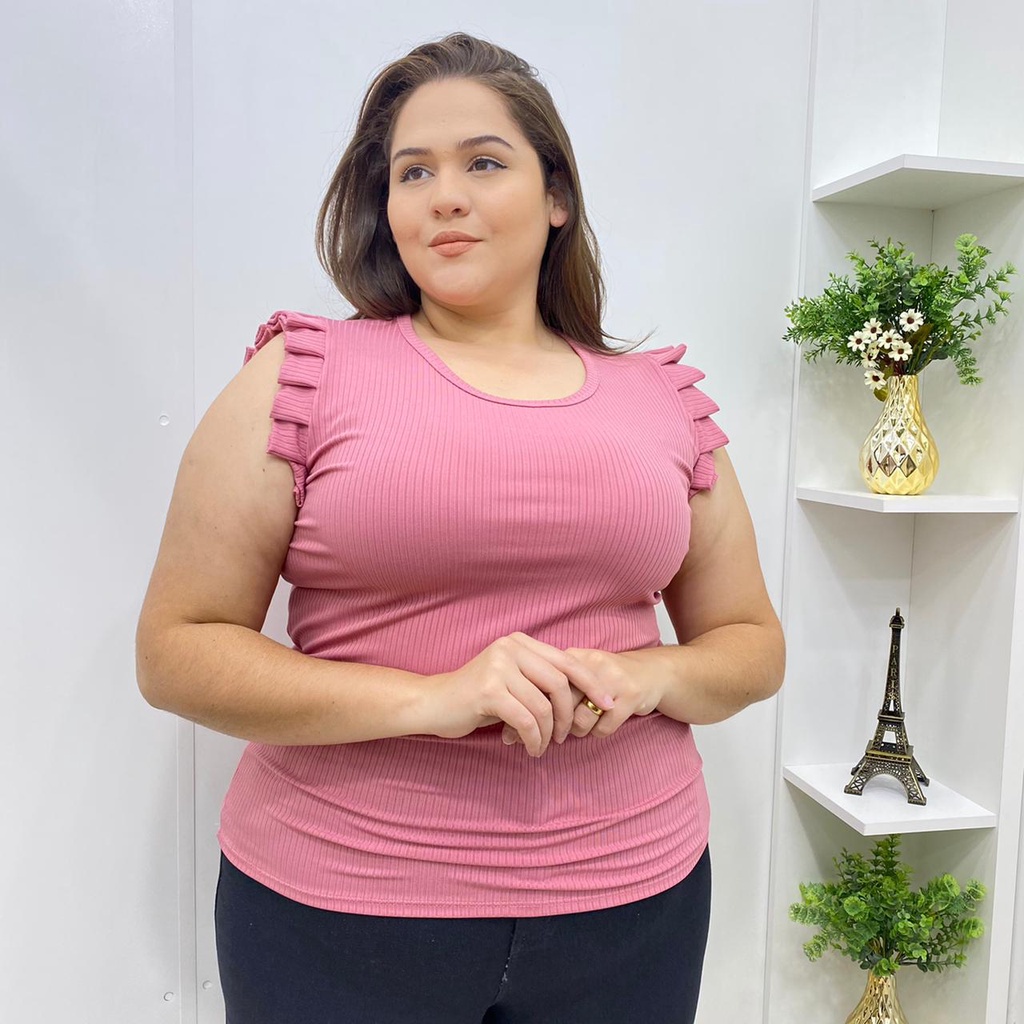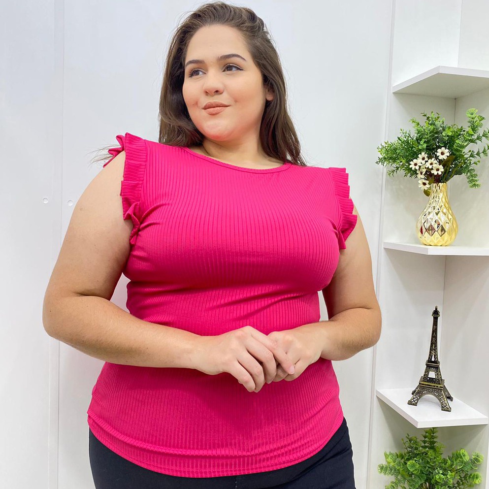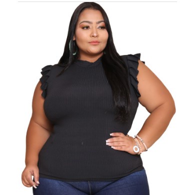 Blusa Canelada Plus Size / Basica Com Babado Girassol 🌻