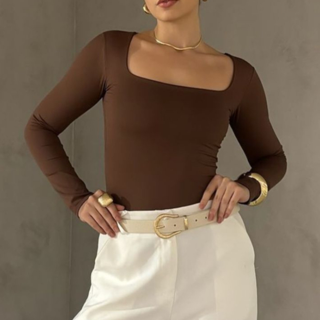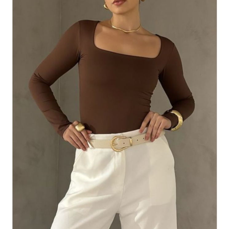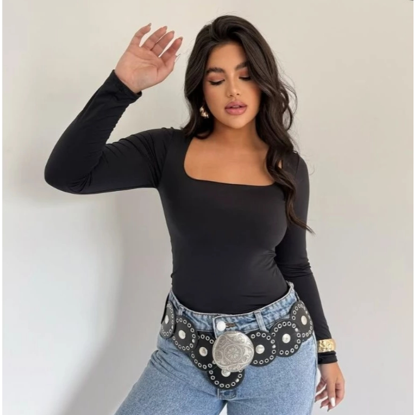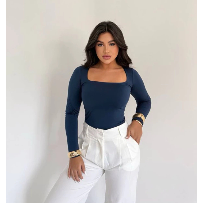 Blusa SUPLEX feminina Manga Longa Decote Gola Quadrada Moda Inverno
