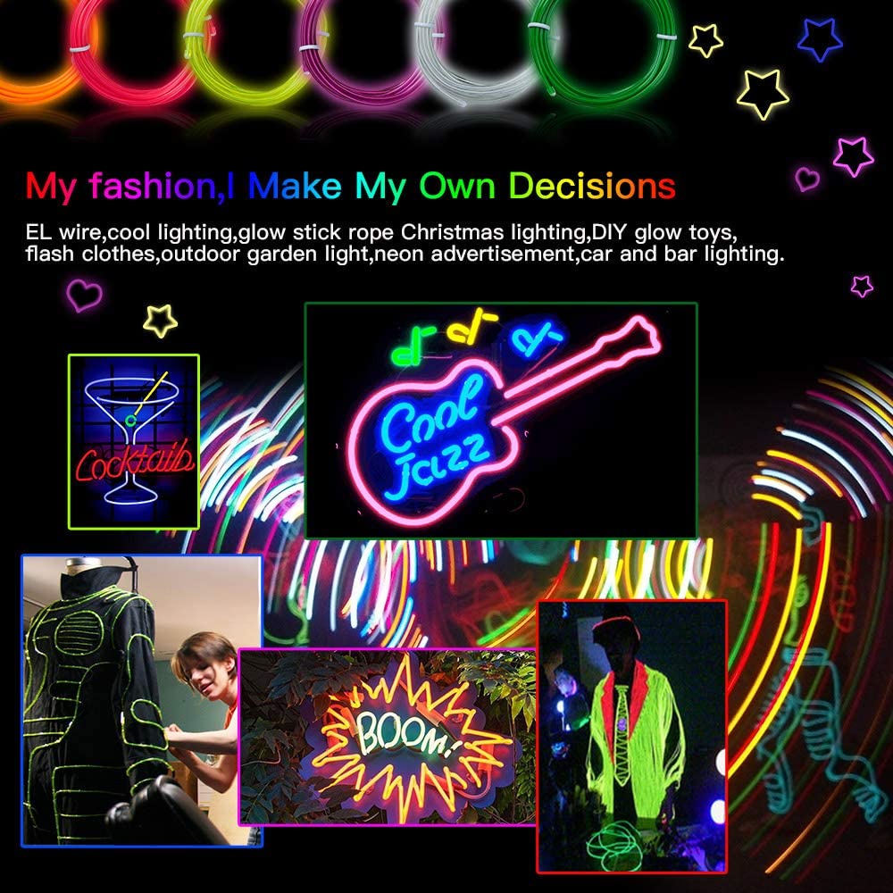 5 metros / 16 pés flexível el fio de fio de néon, linha de luminescência de relâmpago de frequência luminosa de néon, luzes de néon, luzes de decoração de carro, decoração de jardim, luzes de corda, roupas e sapatos decoração DIY