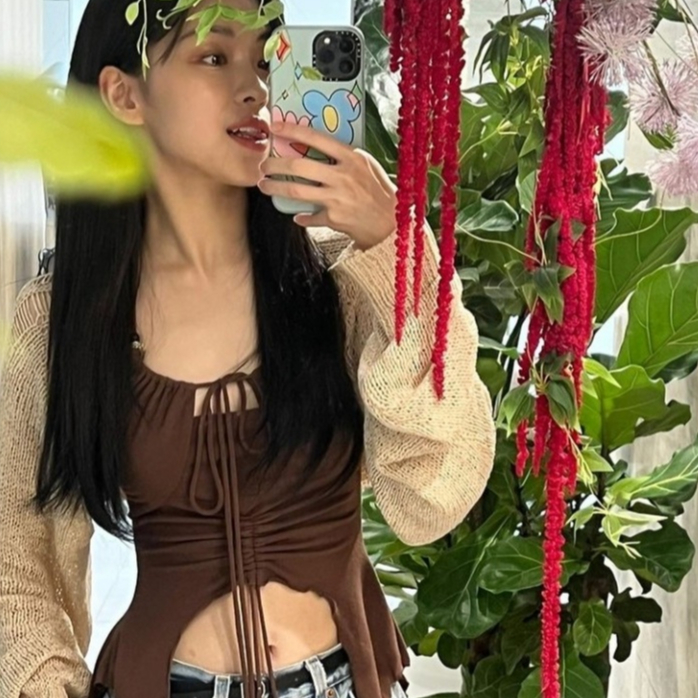 [Genuine Produtos Da Coreia/Dor Ou Prazer freezia Moda SEIREN bolero SET Azul Marinho color] top & aespa karina NewJeans Danielle Mulher Coreana Estilo Rua