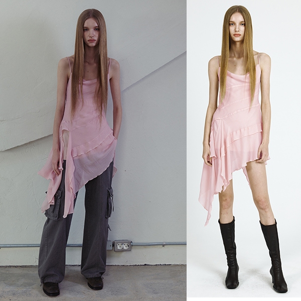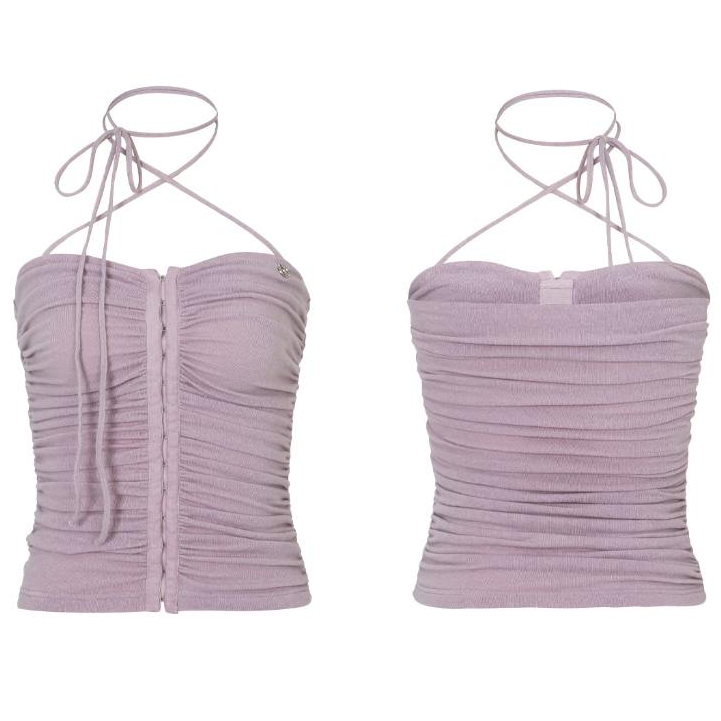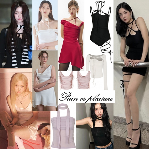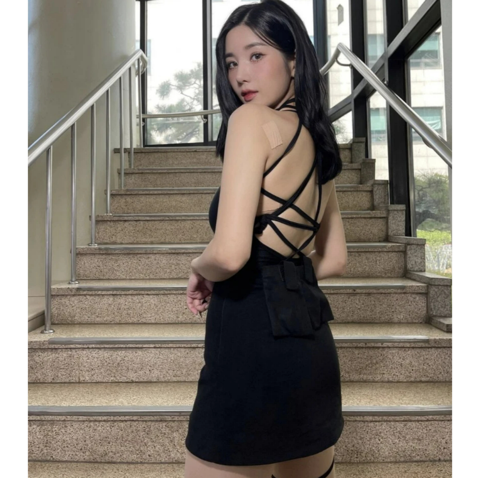 [Genuine Produto Da Dor Coreia Ou Prazer BLACKPINK NMIXX sullyoon style] purple Marrom Azeitona Preta Cortada top cowl dress Mulher Coreana K-pop idol fashion