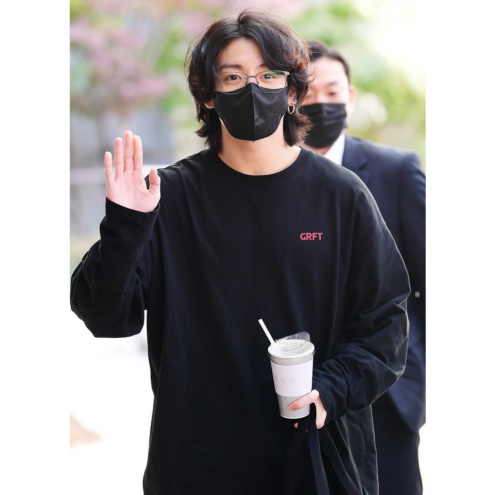 [Produto Genuíno De graffitionmind BTS jungkook] LOGO GRFT SPLIT LONG SLEEVE TEE Algodão 100 % 3 Cores Carvão Preto Branco