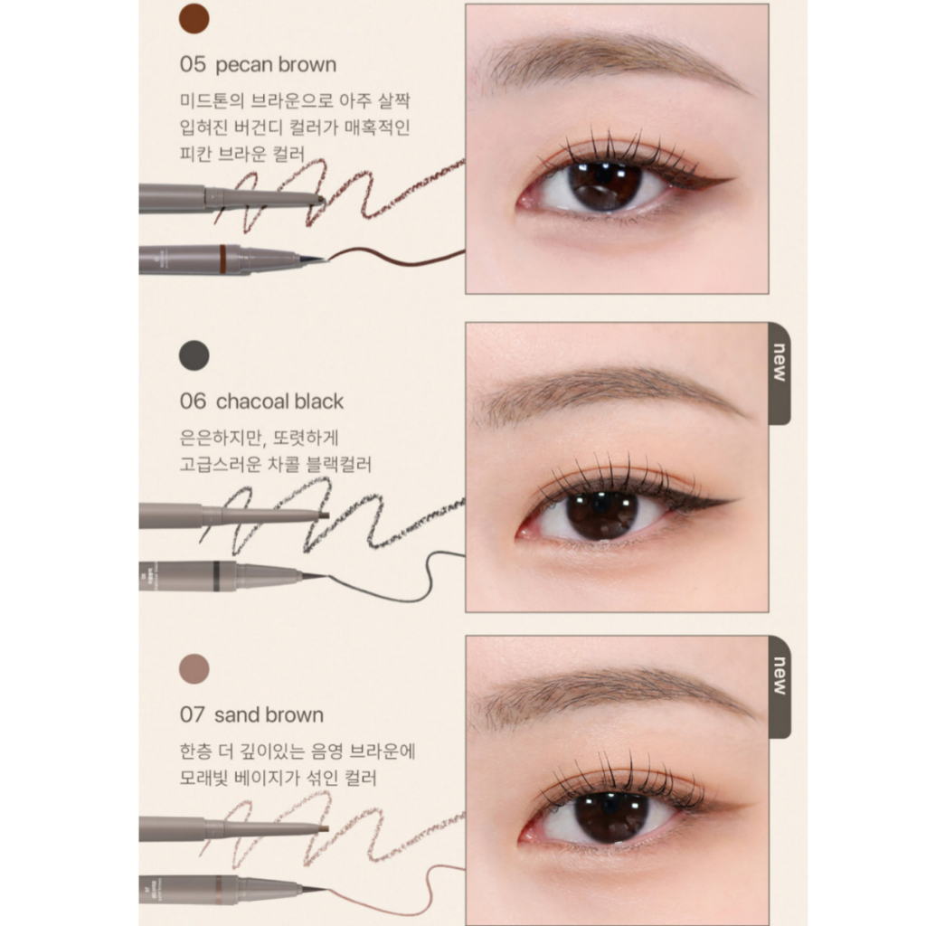 [Nobev] Slim Edge Dual Eyeliner 7 Cores Lápis Slim Edge Dual eyeliner + Delineador De Olhos Com Escova Líquida