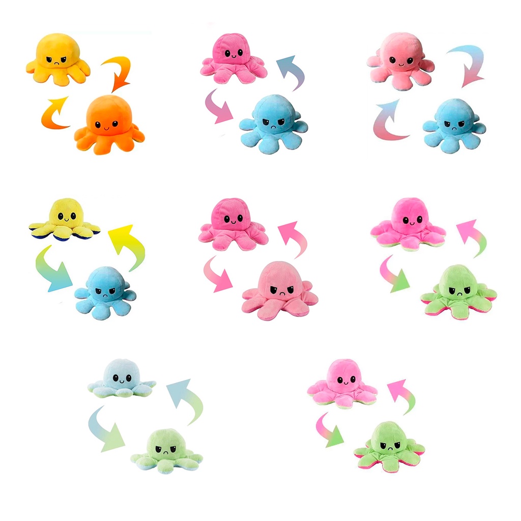 Polvo De Pelúcia TikTok 30cm Reversível Bipolar Grande Humor Feliz / Bravo - Bbr Toys B1236