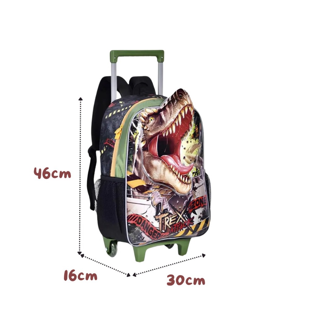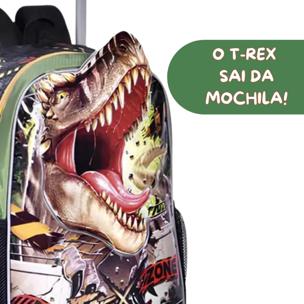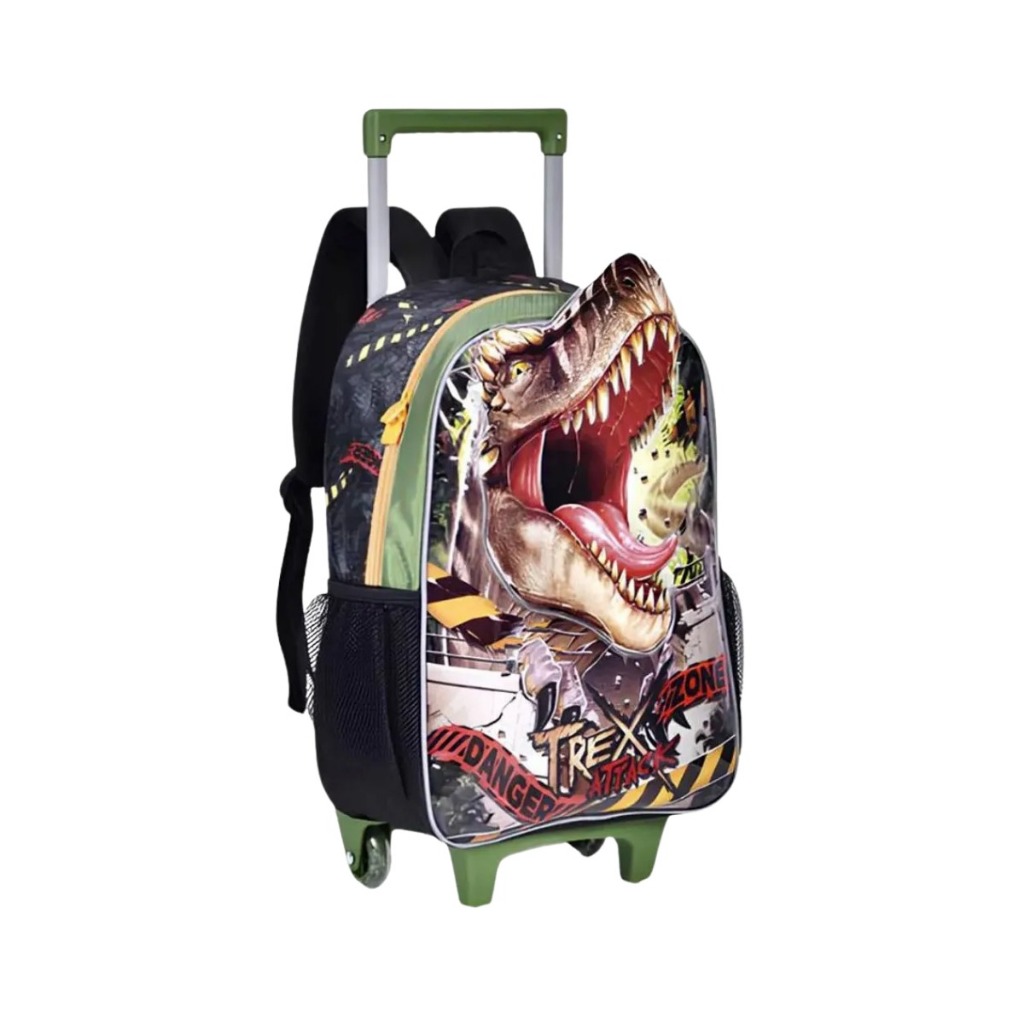 Kit Mochila Escolar Dinossauro Trex De Rodinhas Clio