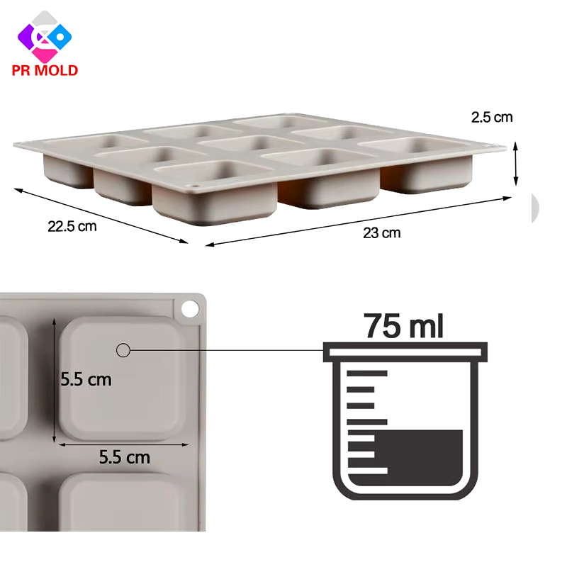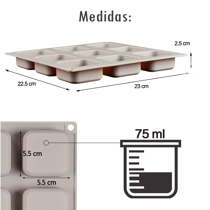 Forma Molde de silicone sabonete quadrado 9 cavidades