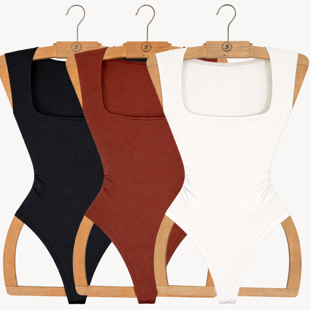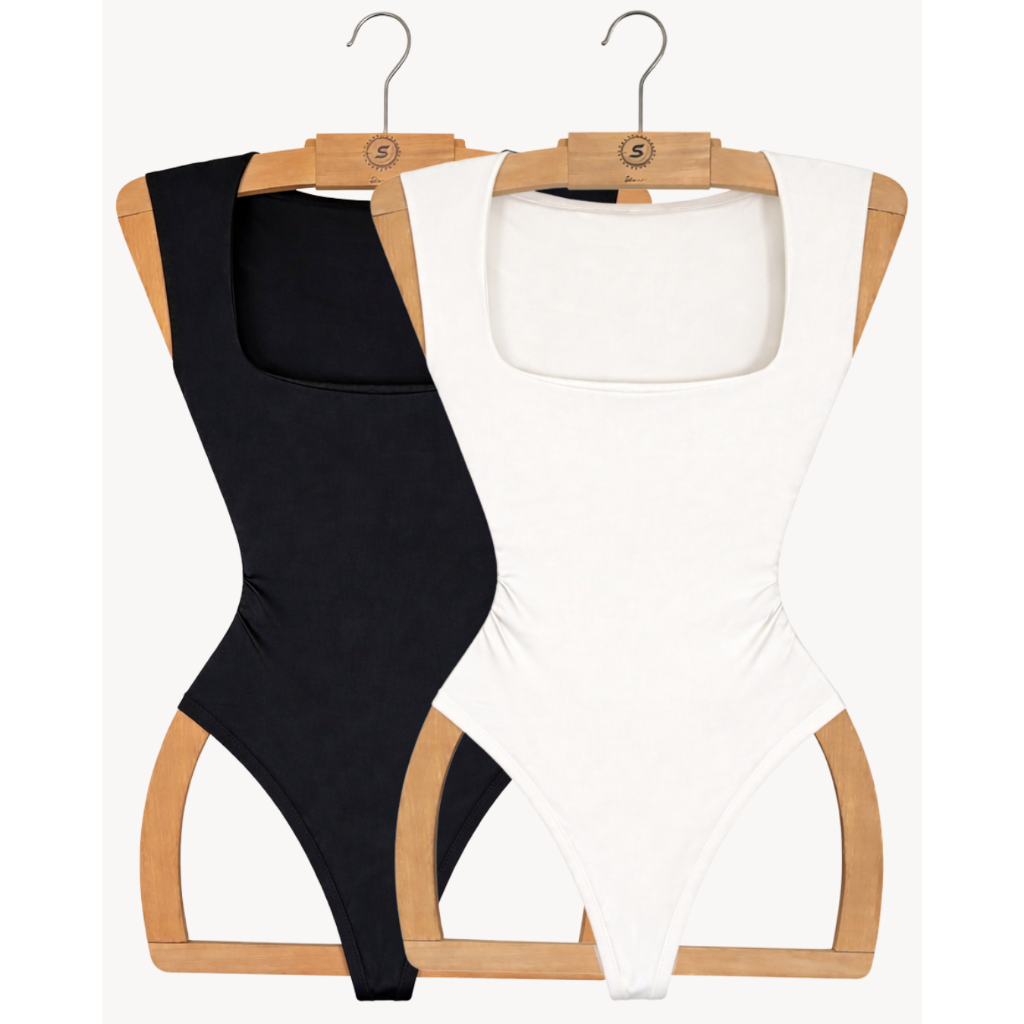 Kit 3 Body Regata Decote Quadrado Feminino Luxo Alças Grossas Collant Sulplex Forro Dulplo