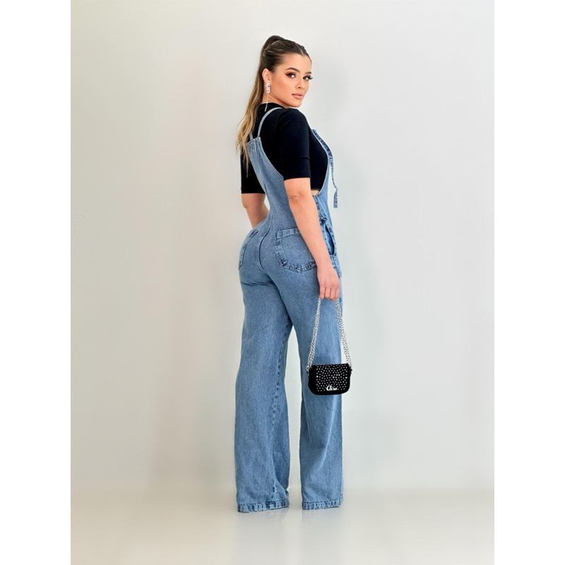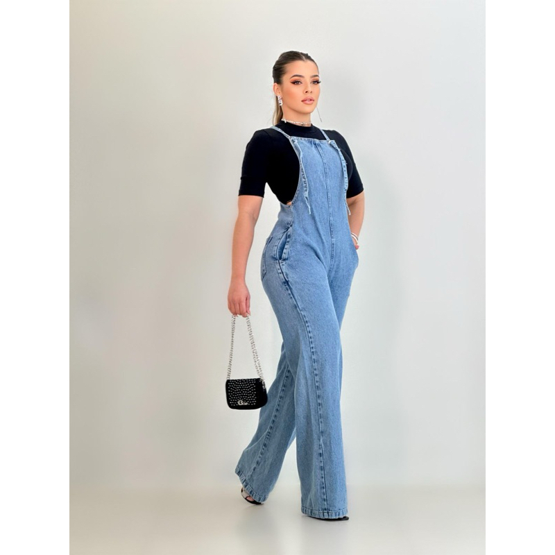 MACACÃO JEANS ALÇA DE OMBRO WIDE LEG SEM LYCRA FEMININA