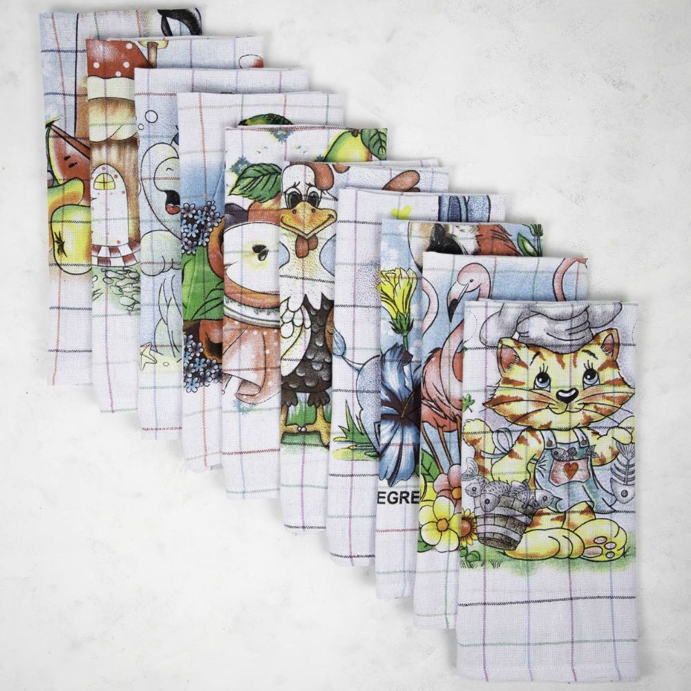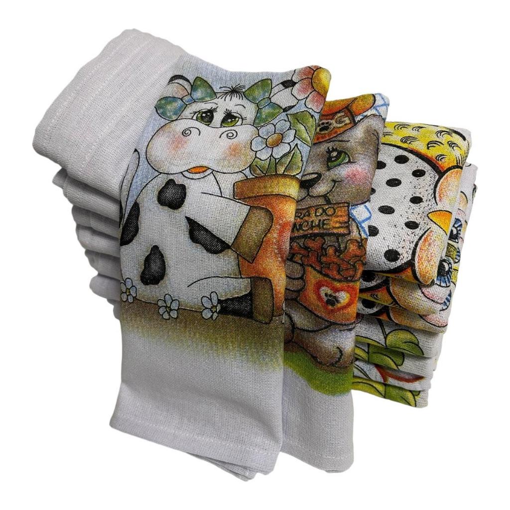 Kit 10 Panos de Prato Copa Bom Estampados 100% Algodão 41x65 cm Sortidos