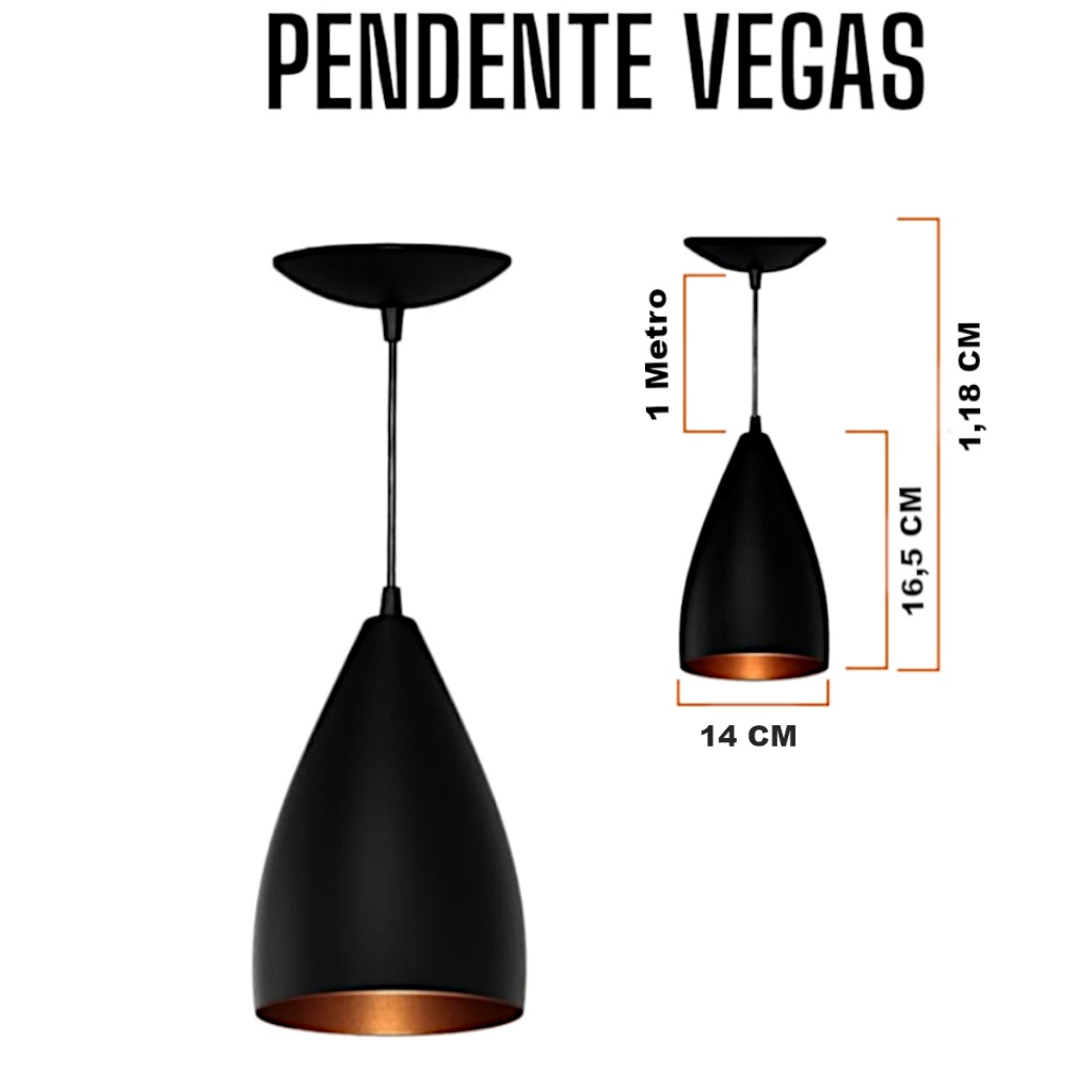 Kit 02 Pendente Vegas Luminaria Aluminio Preto Cobre Envio Imediato